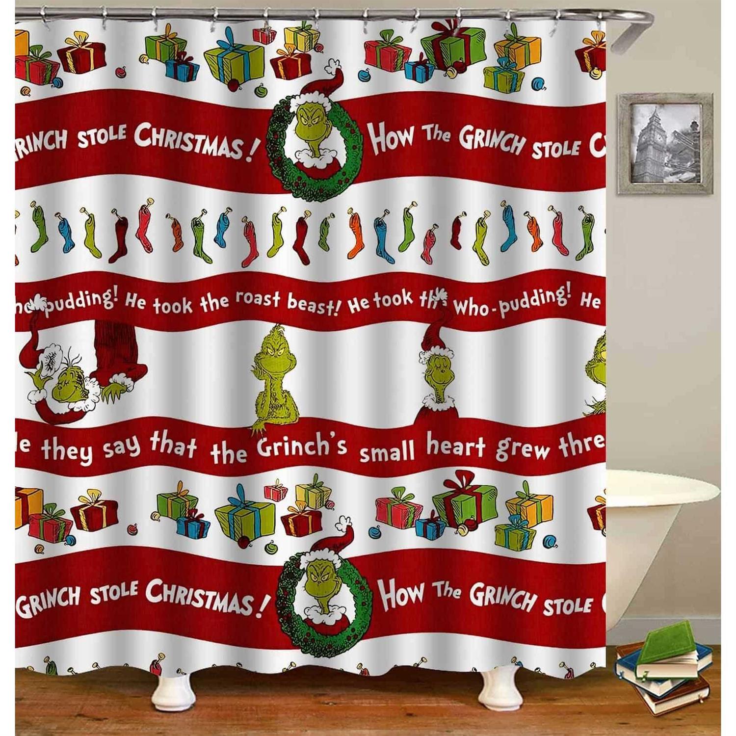 PLMZUOK Merry Grinchmas Bathroom Curtain Grinch Christmas Shower Curtain Winter Xmas Farmhouse Holiday Bathroom Decor 72×72 Inches