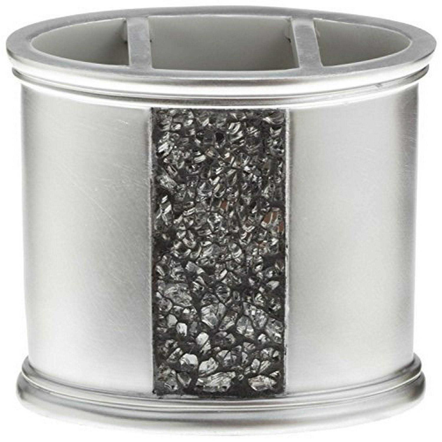 Popular Bath 5 Piece Sinatra Silver Shower Curtain and Resin Bath Accessory Set