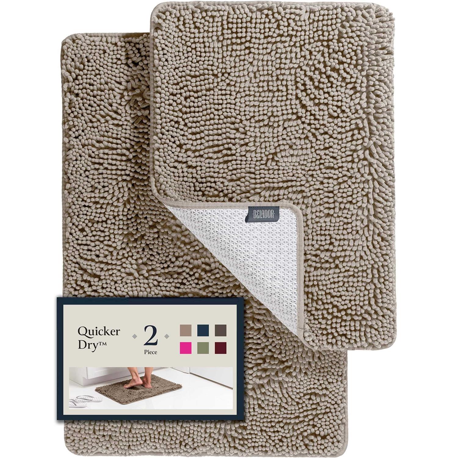 Belador Bathroom Rugs Sets 2 Piece Plush Bath Mat Set Quick-Dry Soft Chenille Bathroom Mat with Rubber Backing