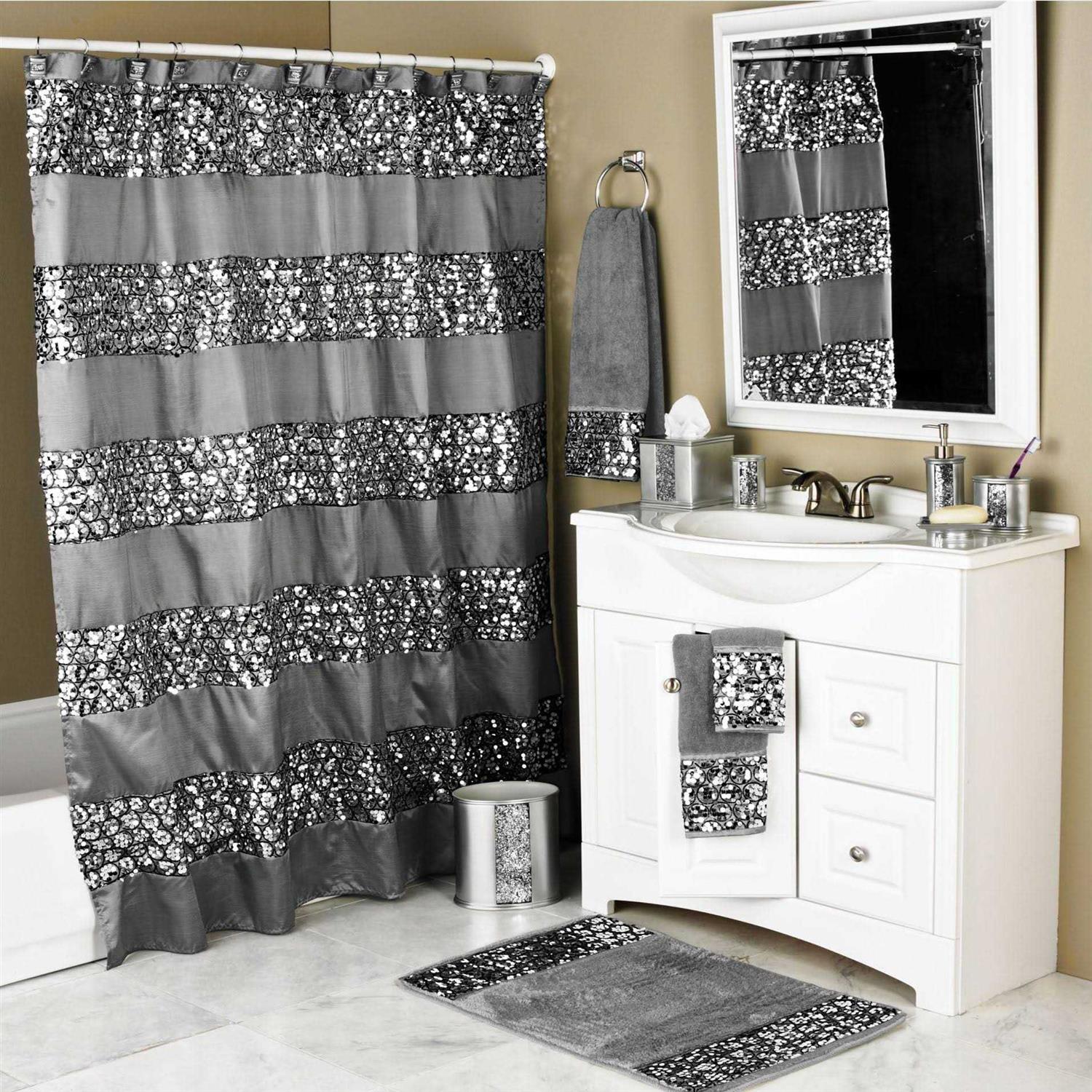 bed bath n more Luxury Shower Curtain and Hook Set Silver Curtain