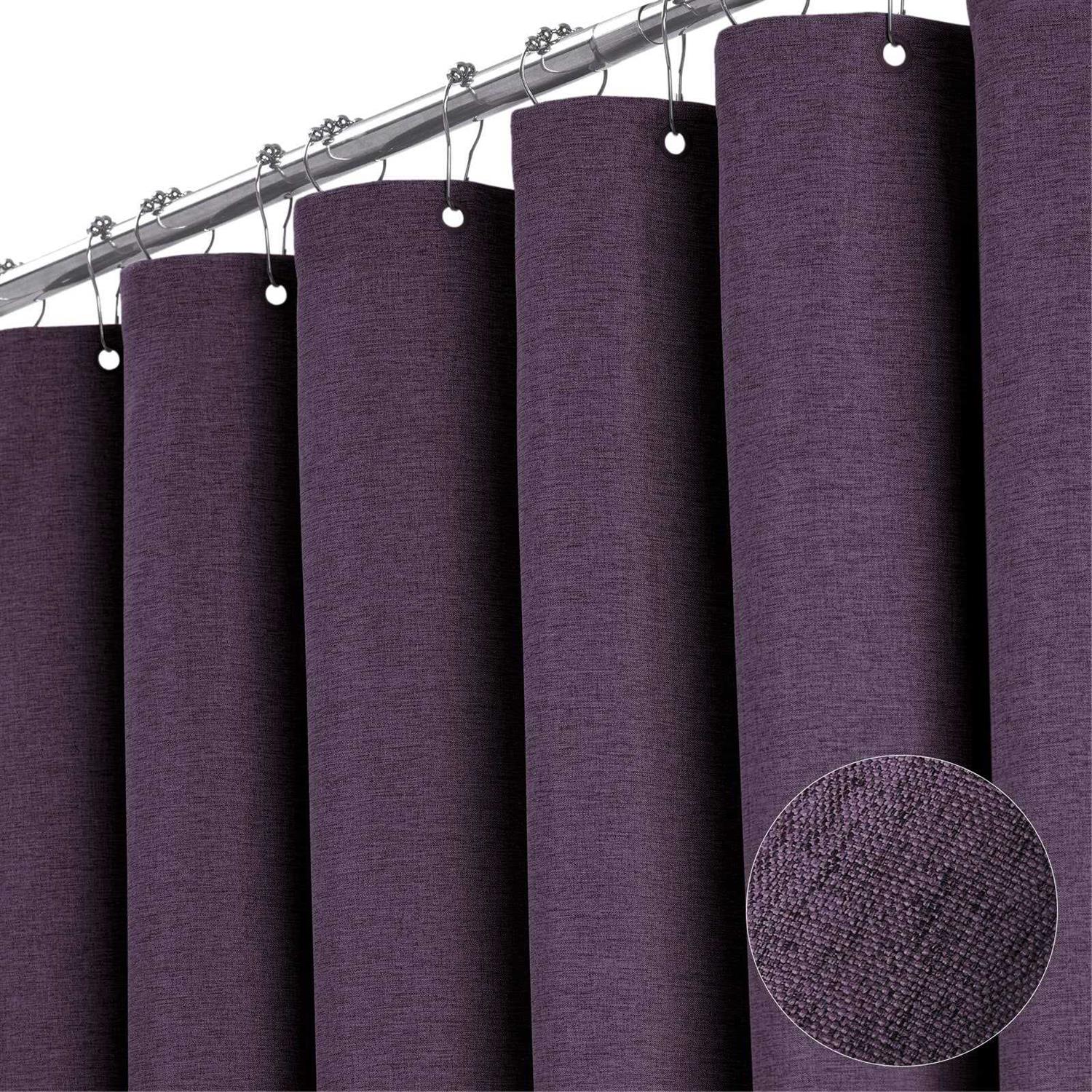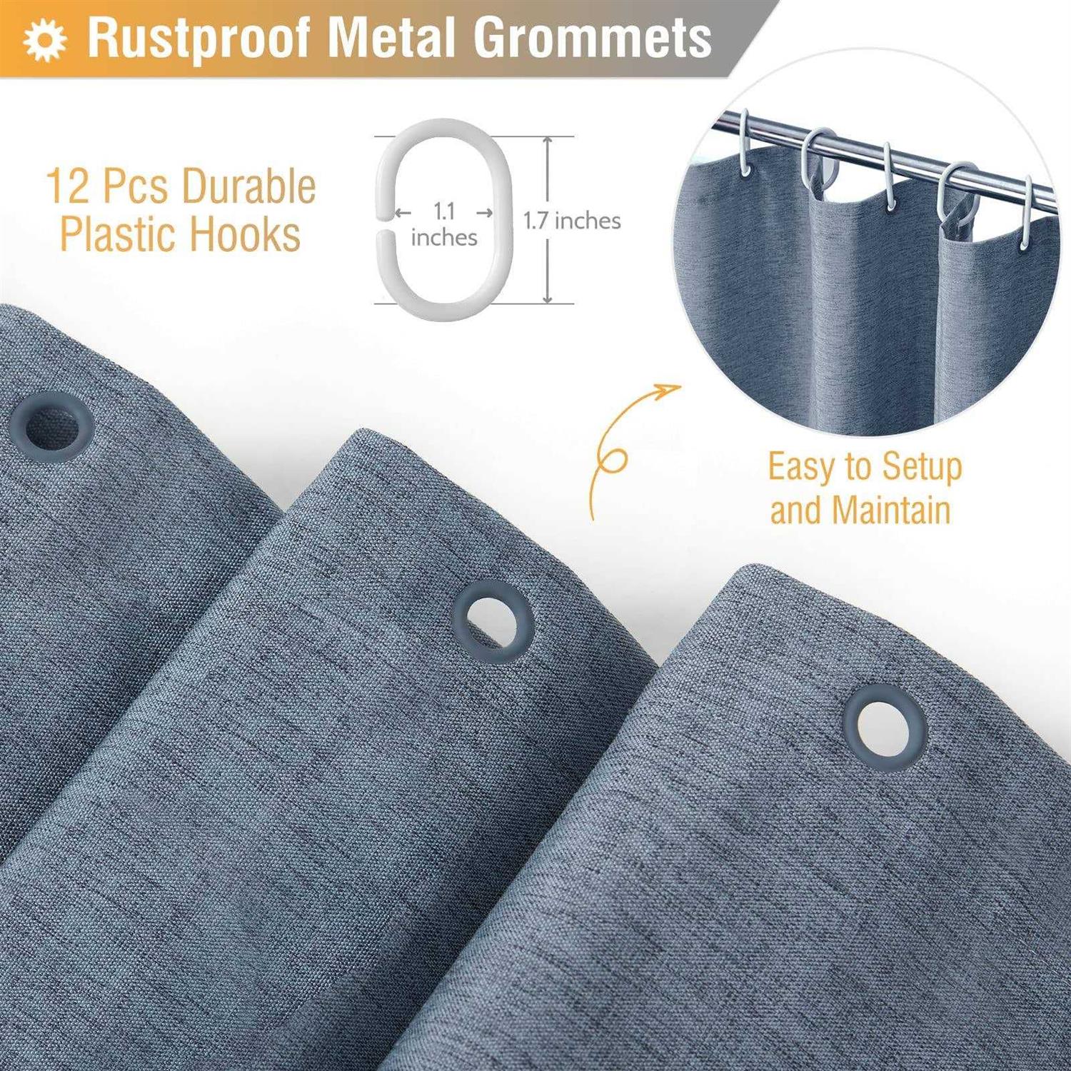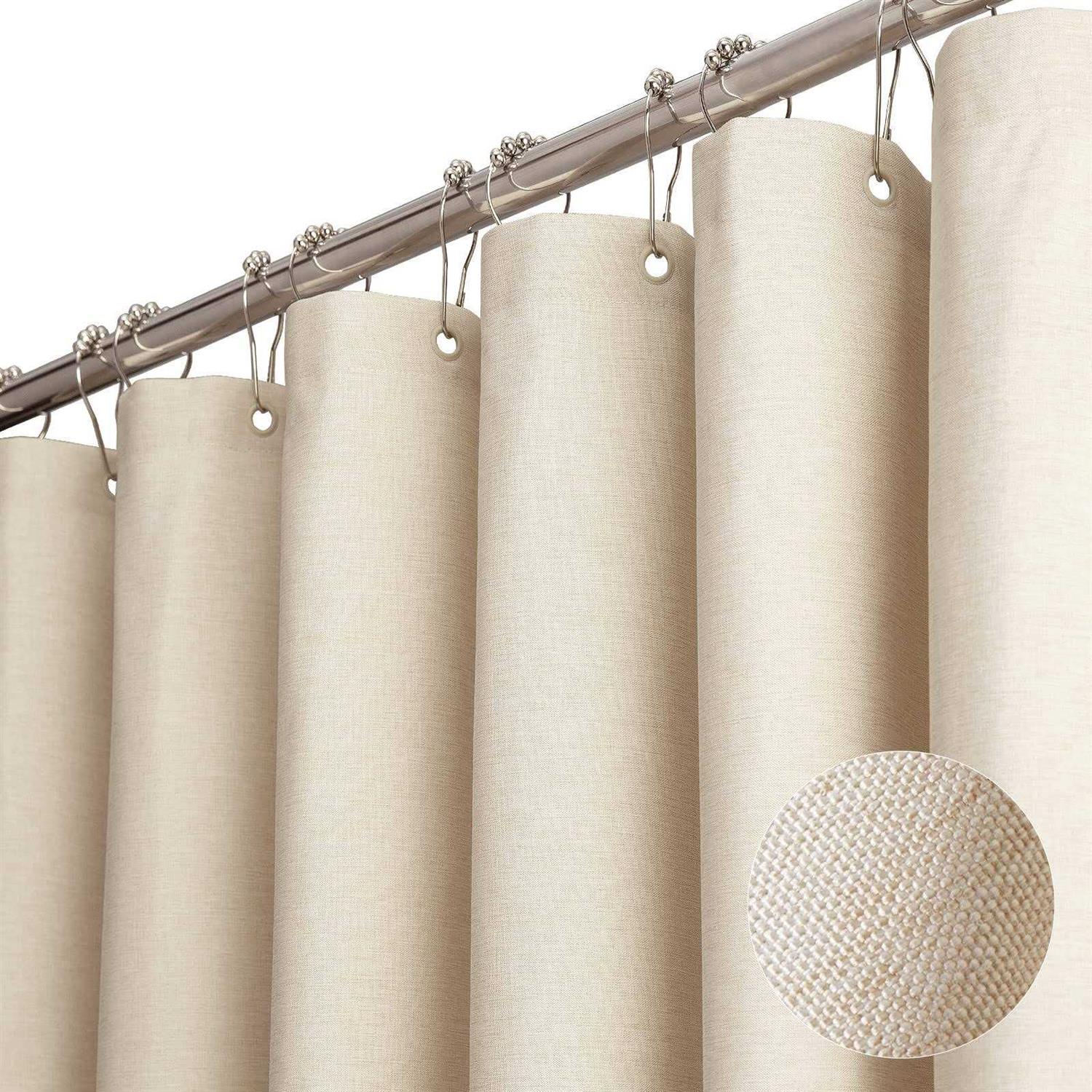 BTTN Long Fabric Shower Curtain Linen Textured Heavy Duty Shower Curtain Set with 12 Plastic Hooks