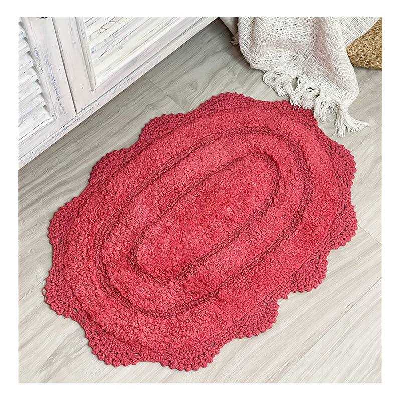 Chardin home Crochet Bathrug 100% Cotton Oval bathmat with artisanally Handcrafted Crochet Border