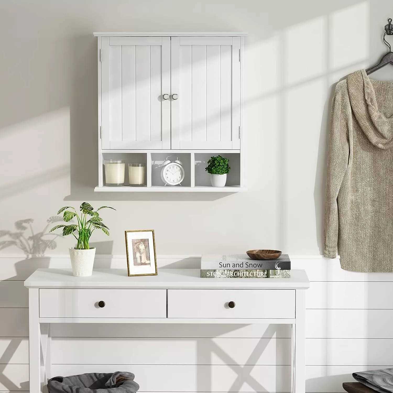 ChooChoo Bathroom Cabinet Wall Mounted 2-Door with 3 Open Shelves