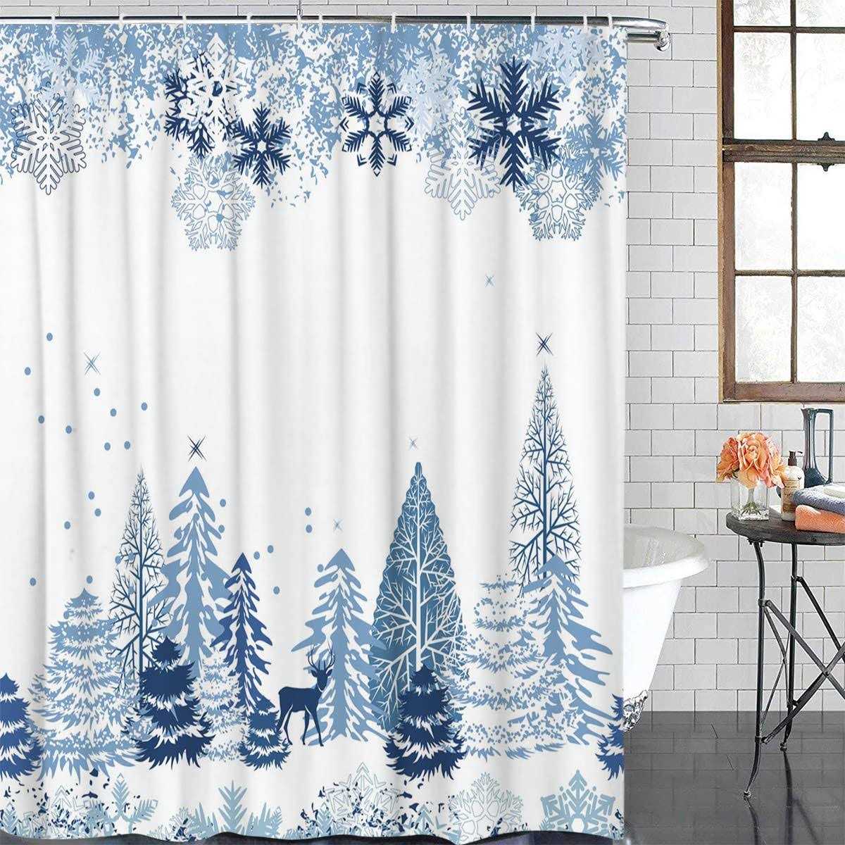 Christmas Shower Curtain Long Winter Blue Snowflake Shower Curtains for Bathroom Polyester Fabric Shower Curtain with 12 Hooks,Waterproof