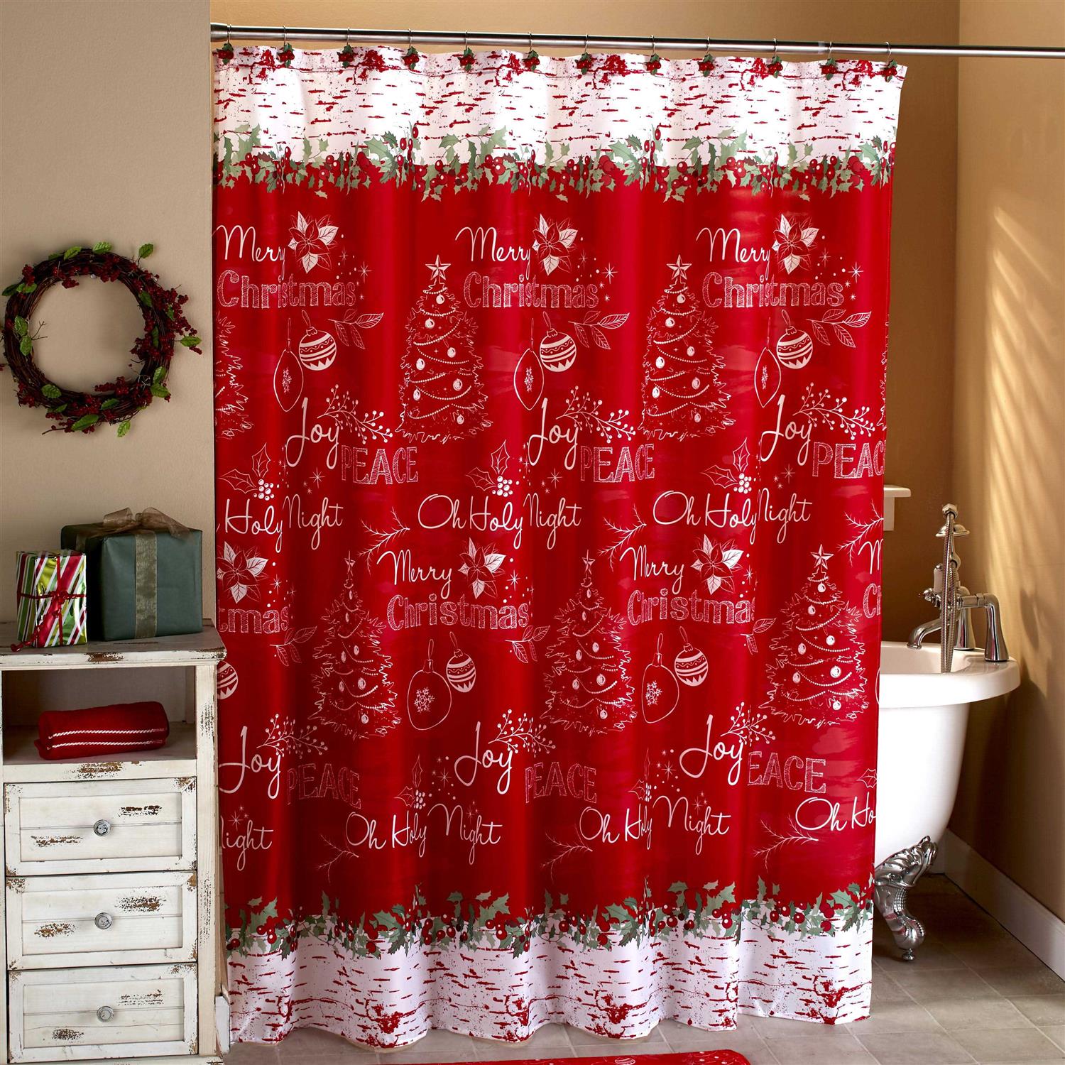 Christmas Shower Curtain Chalkboard Writing of Wishes for the Holidays