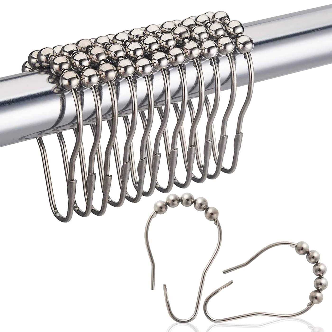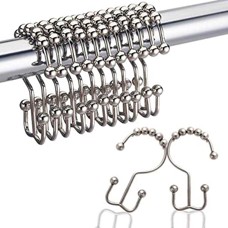 Dadymart Shower Curtain Hooks Rust Resistant Shower Curtain Rings Metal Double Glide Rollers Shower Hooks for Bathroom Shower Curtain Rods Curtains