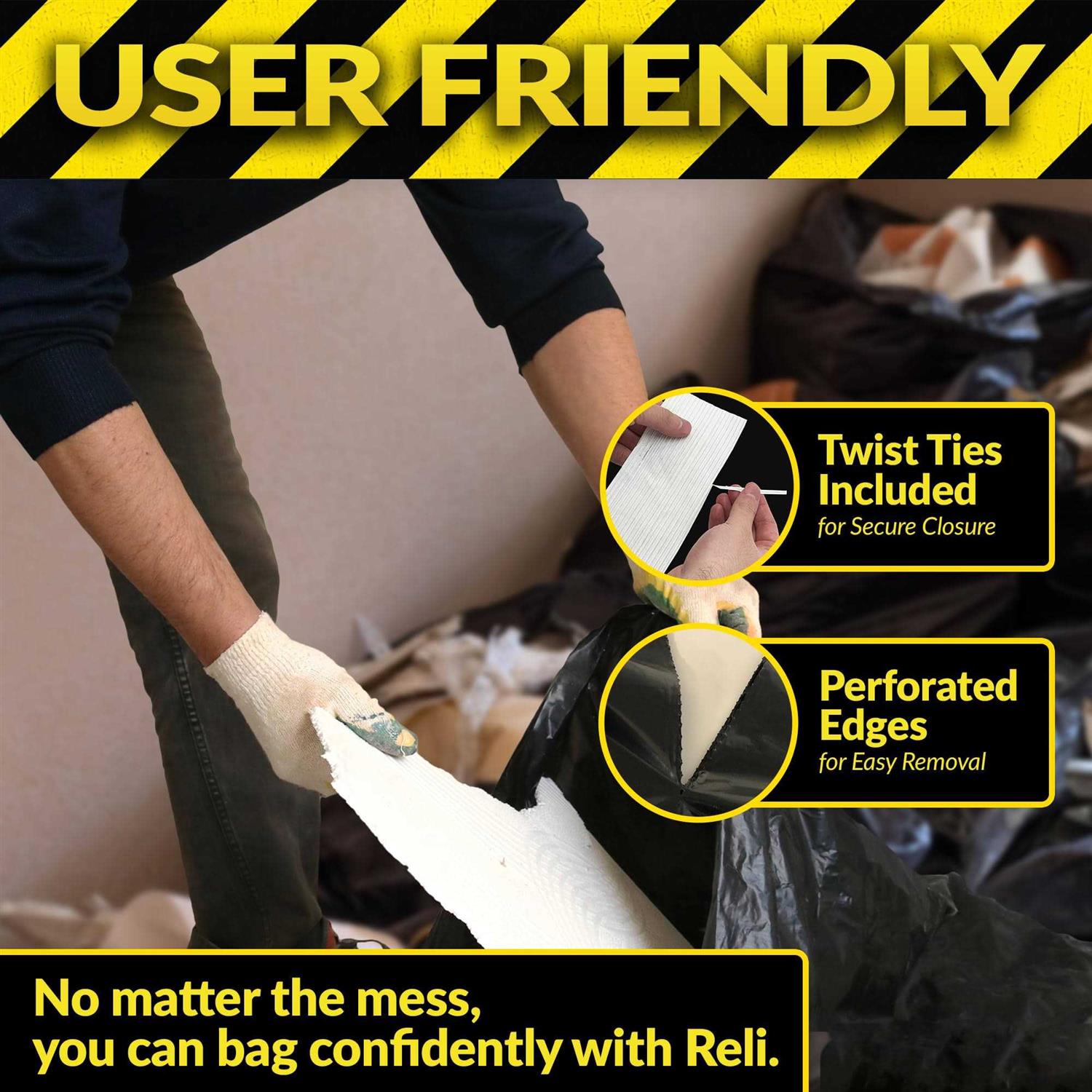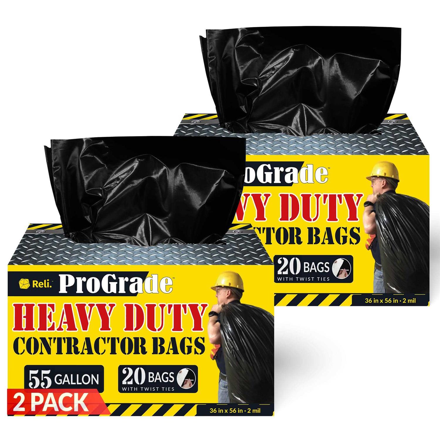 Reli. ProGrade Contractor Trash Bags 55 Gallon Black 55 Gallon Trash Bags Heavy Duty