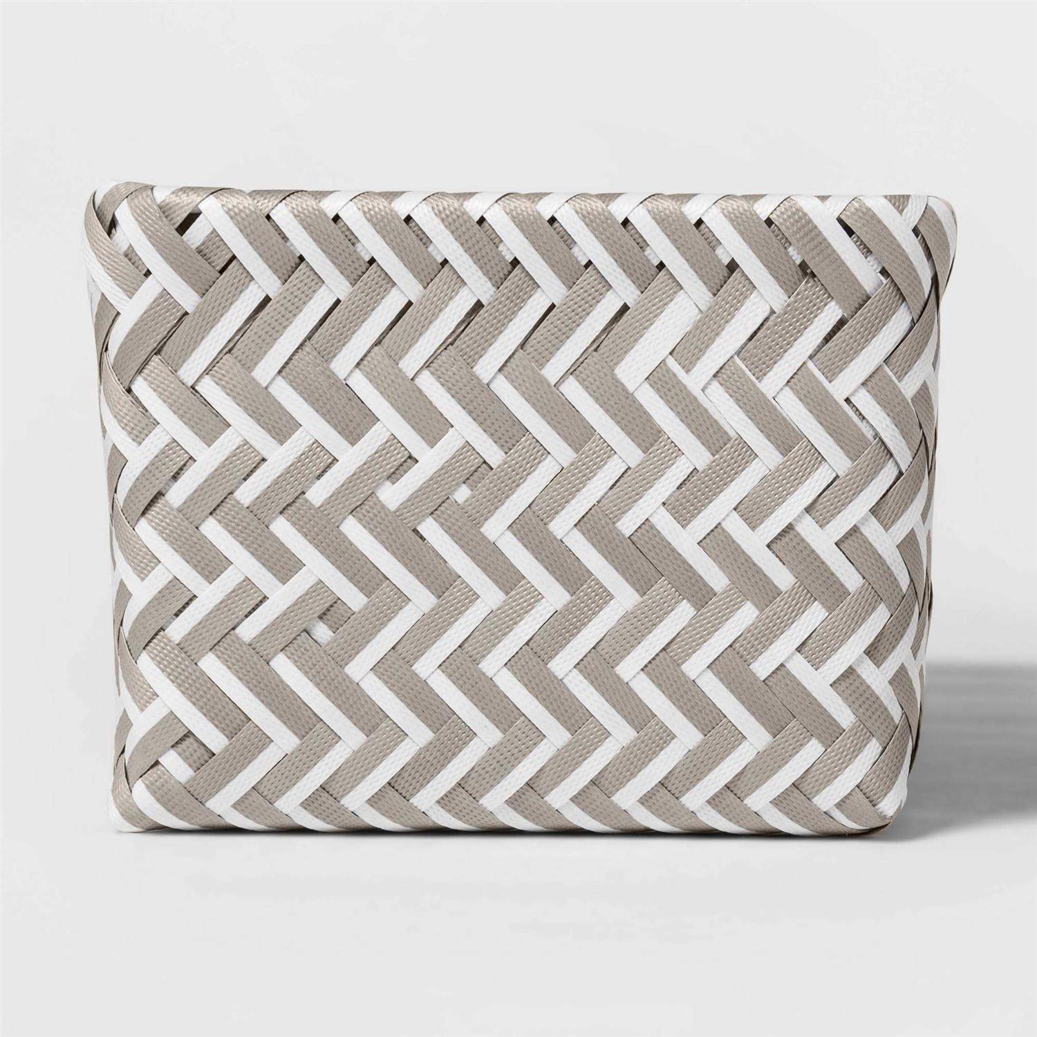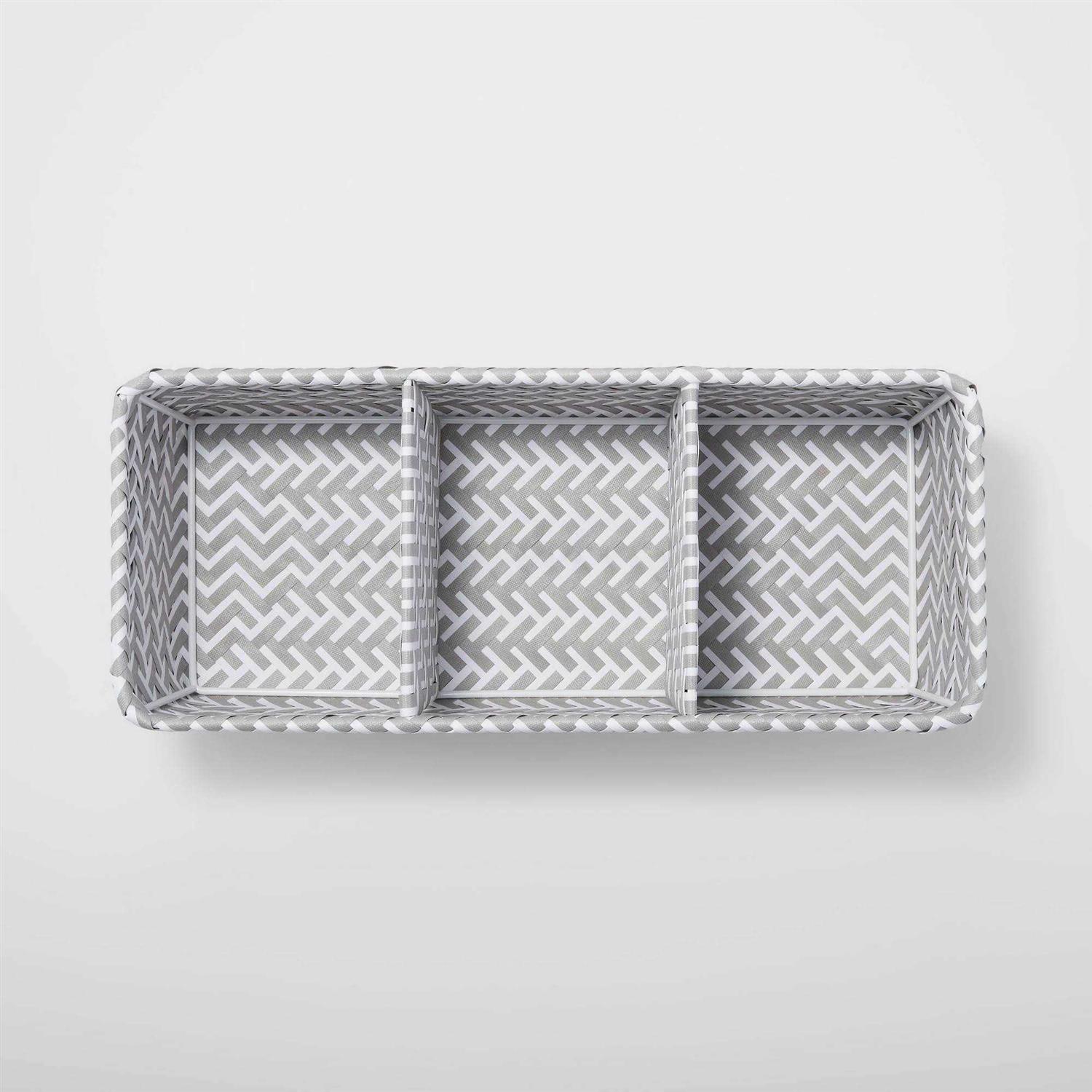 Room Essentials Small Rectangle 3 Compartment Woven Bin Gray