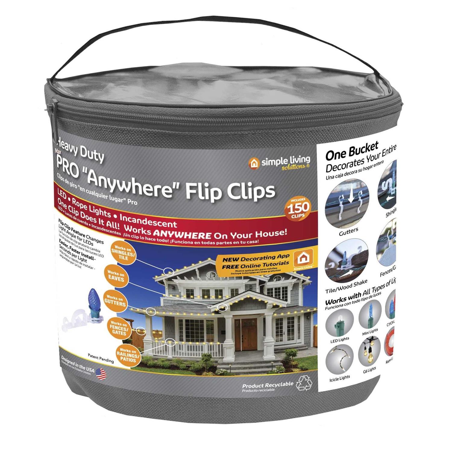 Simple Living Solutions 150ct Max Pro Anywhere Light Clip with Fabric Storage Bucket