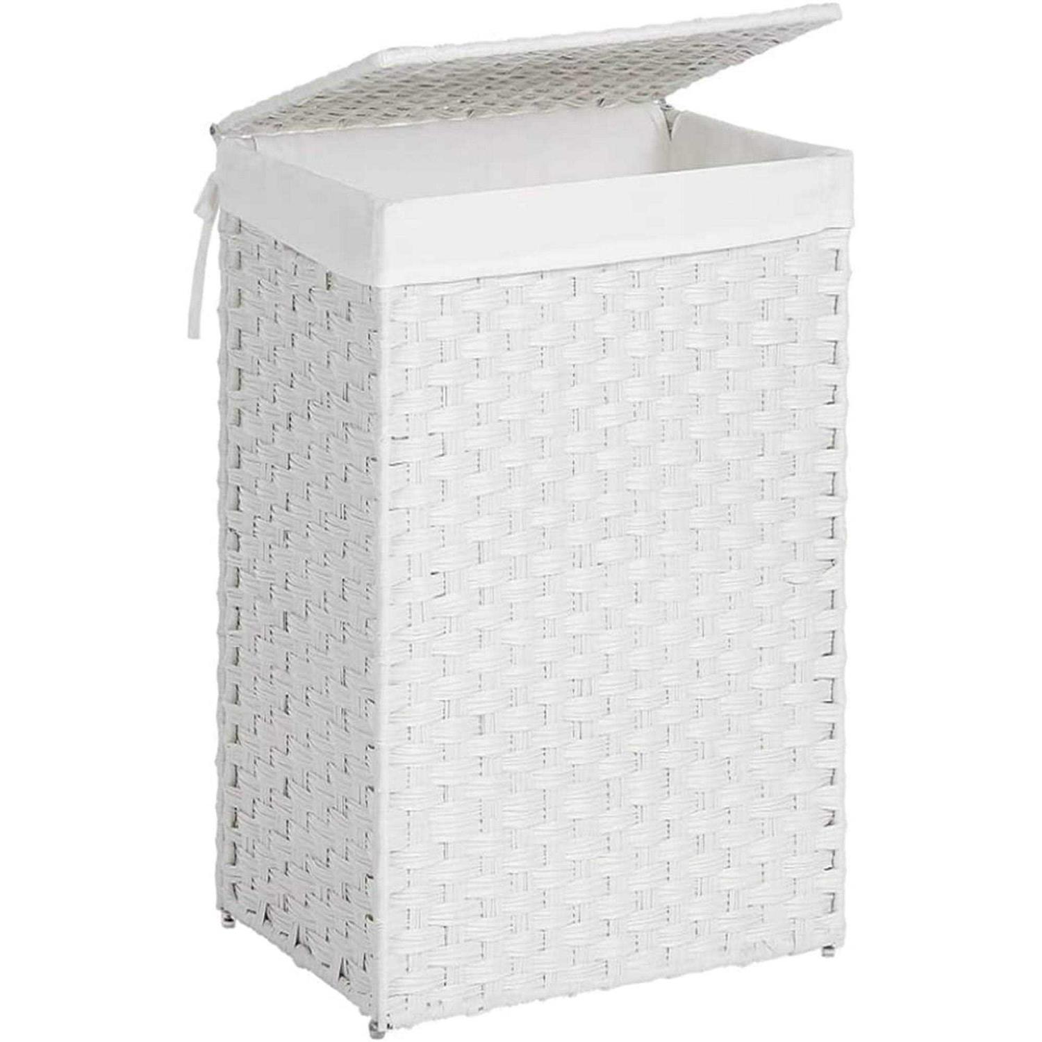 SONGMICS Handwoven Laundry Hamper, 23.8 Gal Synthetic Rattan Clothes Laundry Basket with Lid and Handles