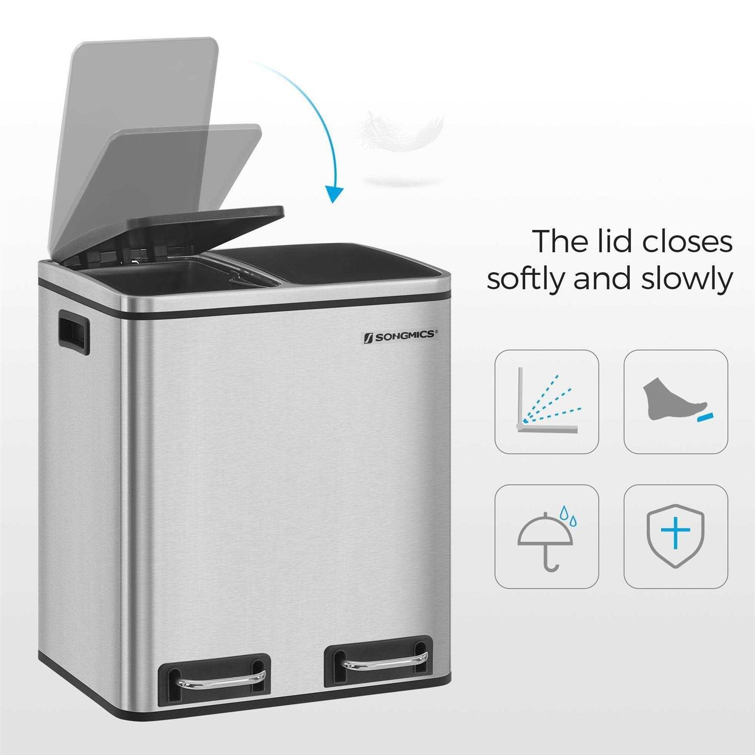 SONGMICS Trash Can 2 x 4-Gallon Dual Compartment Garbage Can