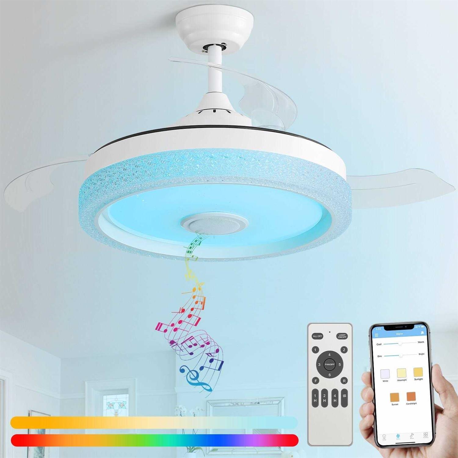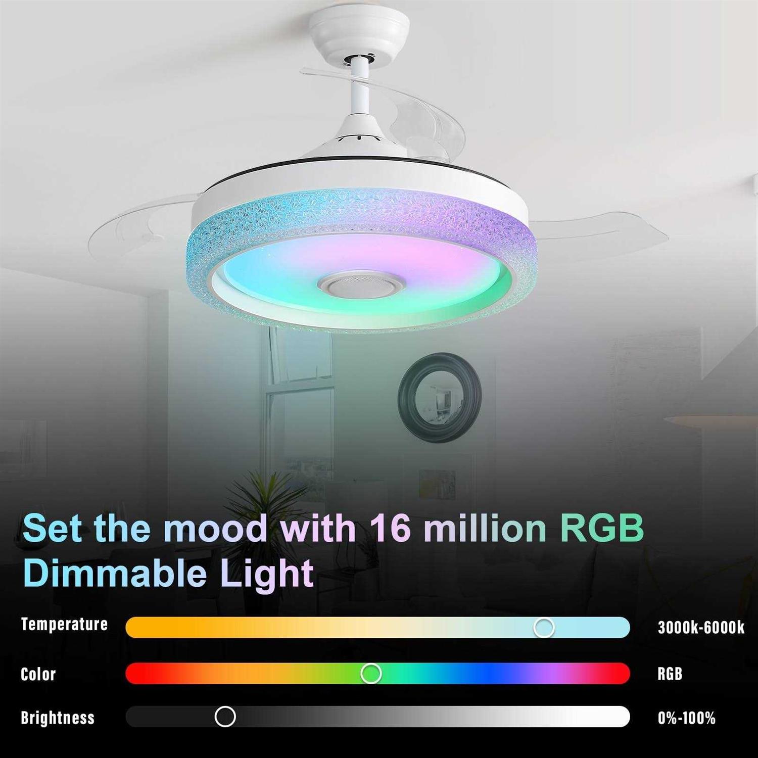 42 Dimmable Retractable Smart Ceiling Fan with LED,APP & Remote Control, RGB Color Changing and Bluetooth Speaker,Kid’s Room