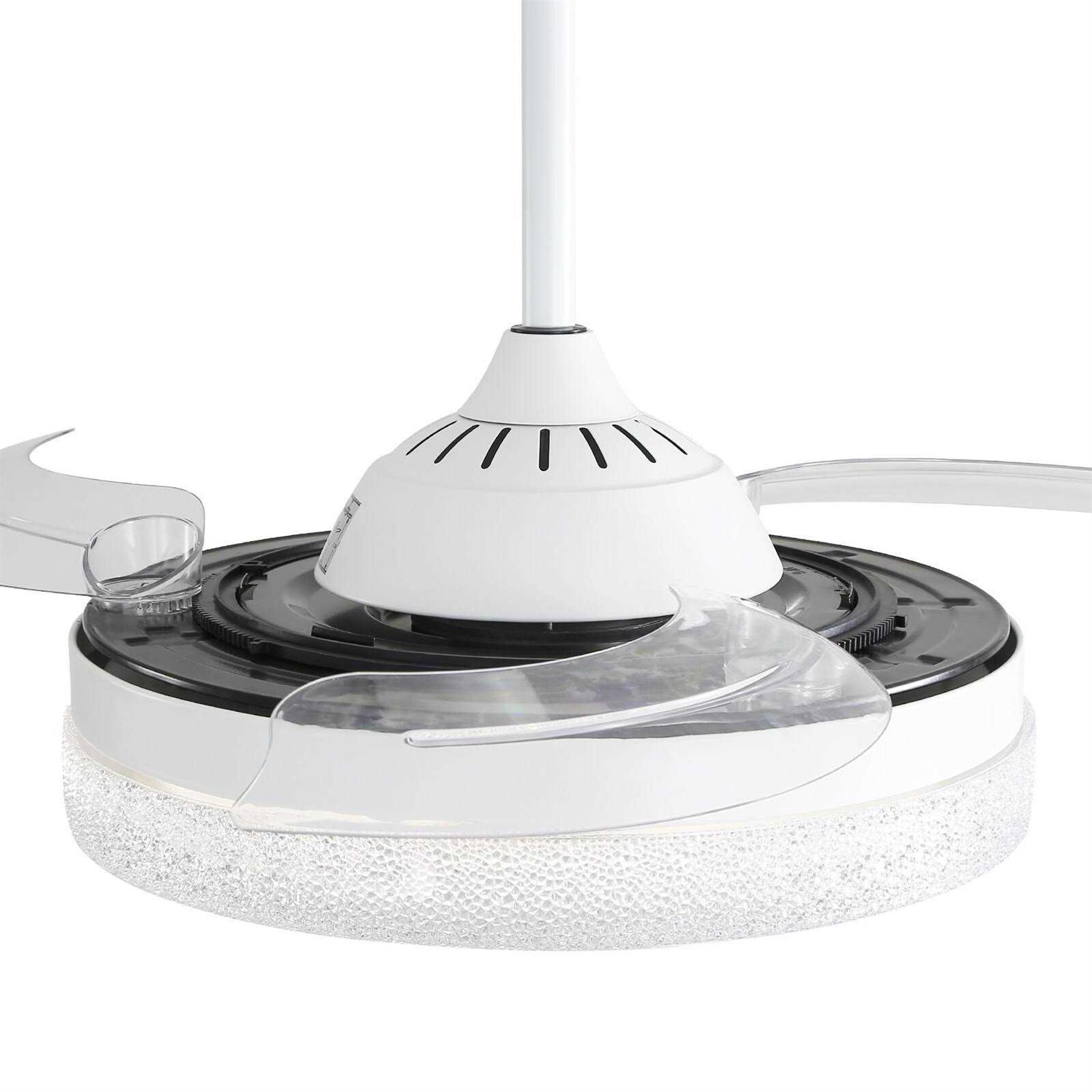 Retractable blade, ceiling fan, RGB light and bluetooth speaker 4 major functions fusion.Best Choice for Kid’s Room,Bedroom,Gameroom. With the retractable blades and stylish fan, this Contemporary 3-blade ceiling fan is sure to brighten up the decor of your living space. An integrated LED light helps to provide ambient illumination and save on your electricity bill. 6 speed motor delivers proper air movement as needed. Retractable Blades: Bladeless blades will stretch-out/retract when turning on/off the chandelier fan automatically 36W LED Light: Integrated LED light is included and replaceable, provide ambient illumination and saves on electricity bill Music Bluetooth Speaker: The Bluetooth speaker in the music ceiling fan light provides 3D stereo surround music APP/ Remote Control: Via APP, you can set a variety of lighting modes/light brightness.