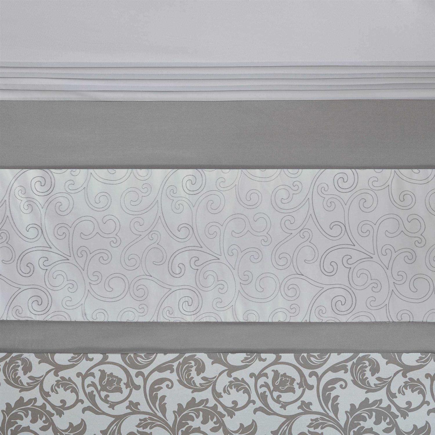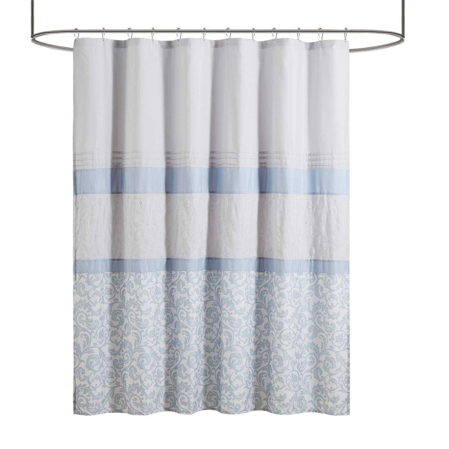 Complete your bathroom with the charm of our Casey Printed and Embroidered Shower Curtain. This microfiber shower curtain features a printed and pieced design in cool grey hues for a soft and traditional look. Elegantly embroidered details add a sophisticated touch, while an added lining provides better draping and added privacy. Machine washable for easy care, this embroidered shower curtain provides a graceful update to your bathroom decor.