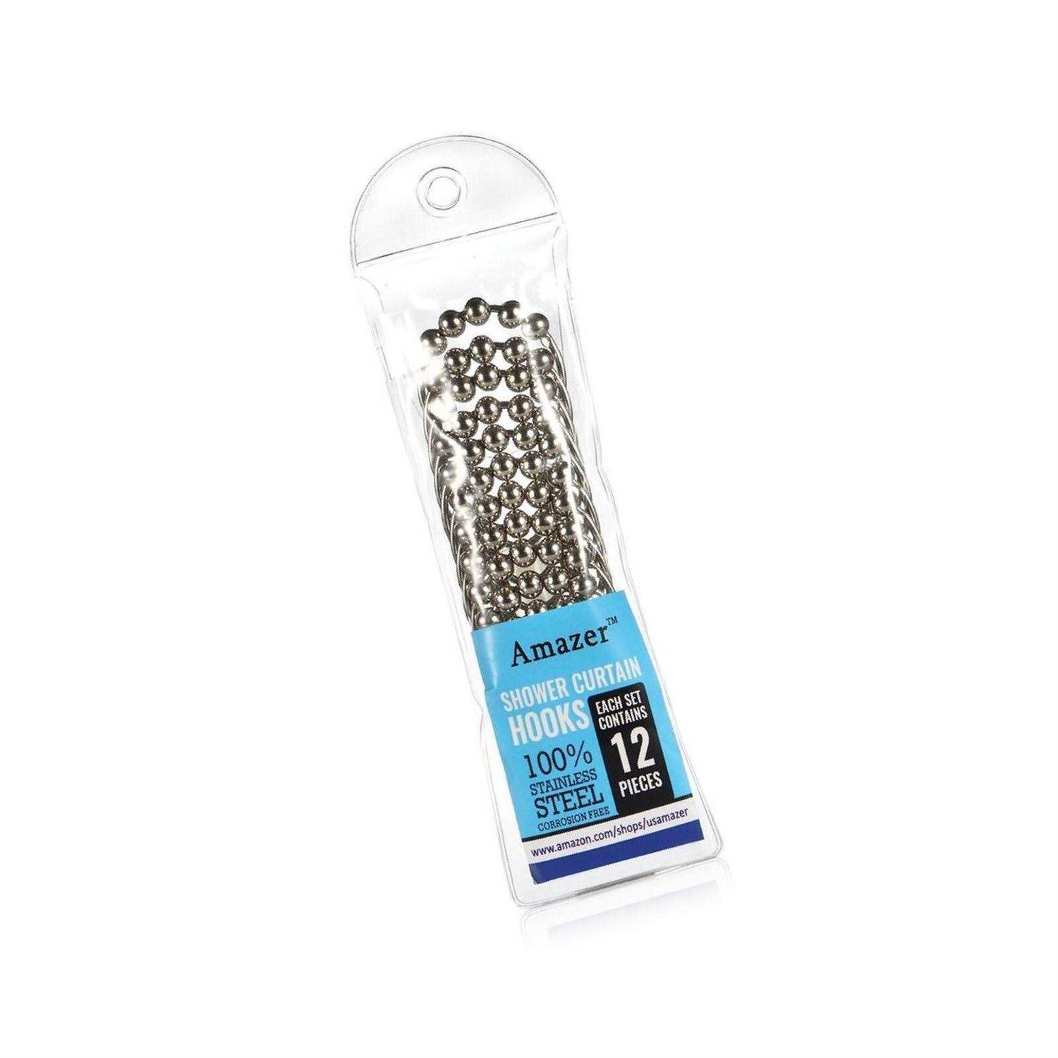 Amazer Rustproof Stainless Steel Shower Curtain Rings Hooks Set of 12 Polished