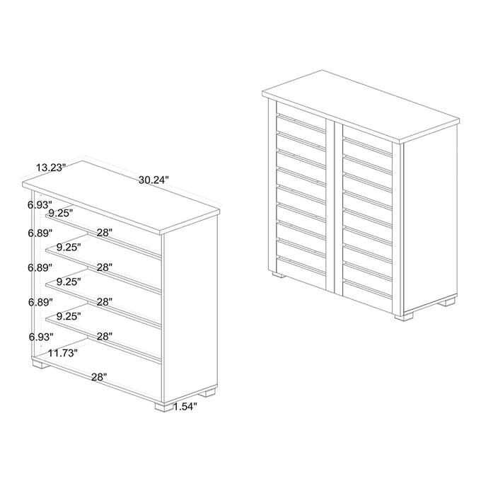 Start organizing your collection of shoes with this practical shoe cabinet. Featuring dark brown PU veneer finish, PVC legs in silver powder coated and a sleek stylish contemporary design, this quality made shoe cabinet easily matches any décor. It features slatted doors and four fixed shelves that stores up to 15 pairs of shoes. Great for organizing your favorites, just perfect for your storage needs! Adalwin shoe storage cabinet is made with open slat doors allowing air circulation which is essential for the storage of shoes helping to keep them mold free. Made in Malaysia, the shoe storage cabinet requires assembly. Dimensions: 38.34″ High x 29.95″ Wide x 13.1″ Deep; Shelf/Drawer1: 6.93″ High x 28″ Wide x 9.25″ Deep; Shelf/Drawer2: 6.89″ High x 28″ Wide x 9.25″ Deep; Shelf/Drawer3: 6.93″ High x 28″ Wide x 11.73″ Deep; Color: One Color.