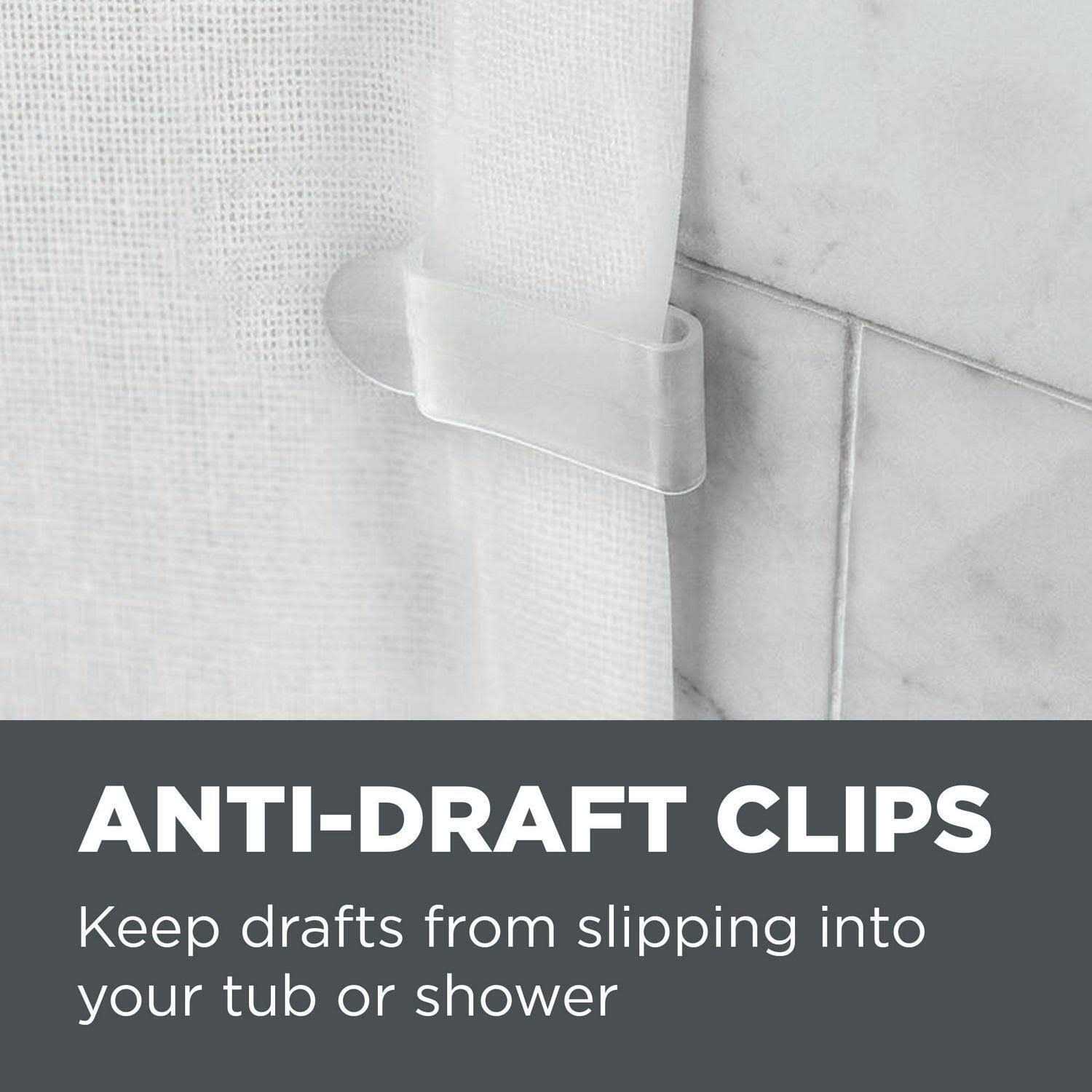 Make your shower feel like new with the attractive and eco-friendly Better Homes & Gardens Recycled Cotton 100% Waterproof Shower Curtain Liner. This soft fabric shower liner is made with 30% post-consumer recycled cotton. Its waterproof polyethylene backing stops water from escaping your shower. This product is treated with an agent to resist mildew. The waterproof shower liner’s weighted hem and two adhesive clips ensure it holds close to the walls of your bathtub. Reinforced buttonhole top construction works with your choice of shower hooks or rings. The white shower liner measures 70 by 72 inches to fit most showers.