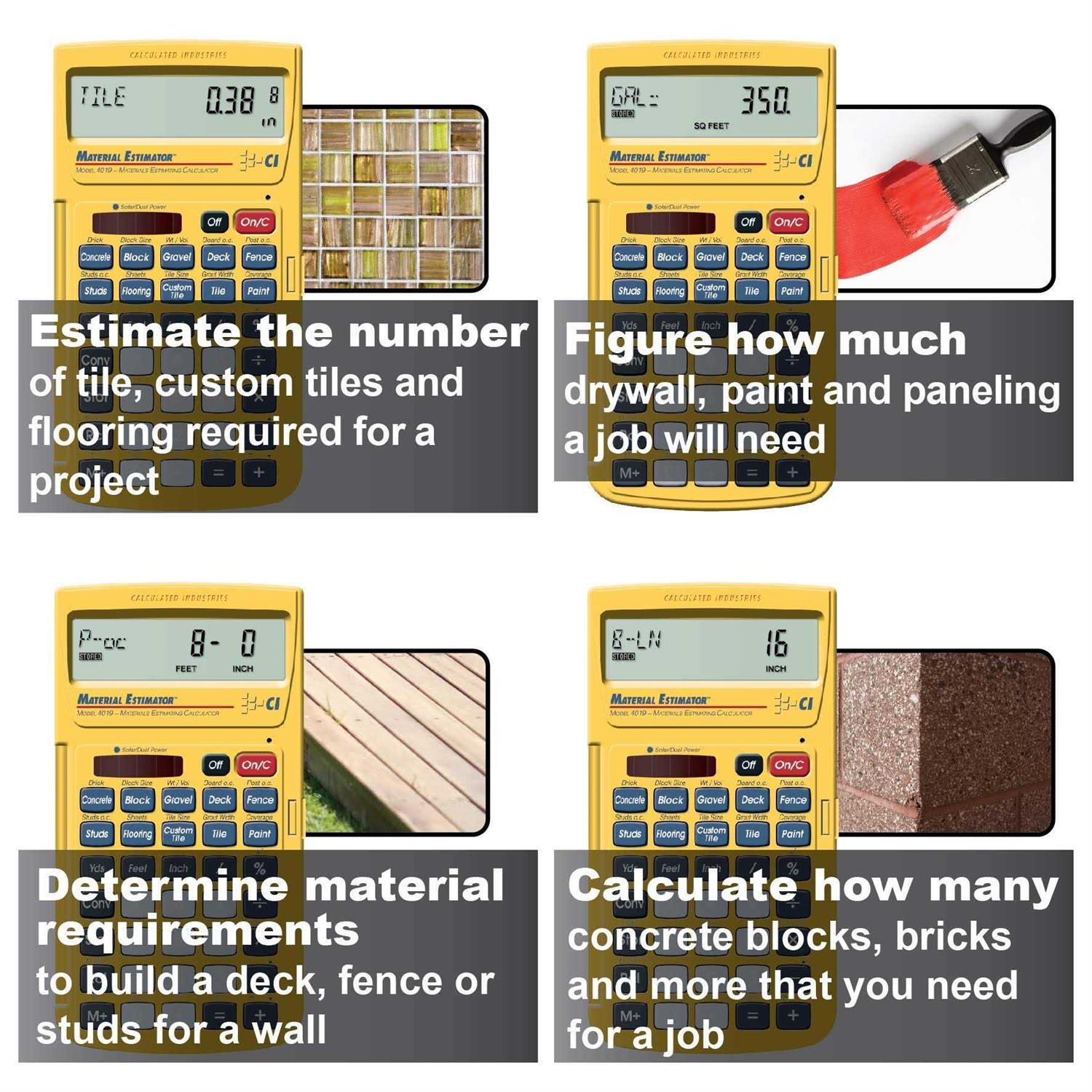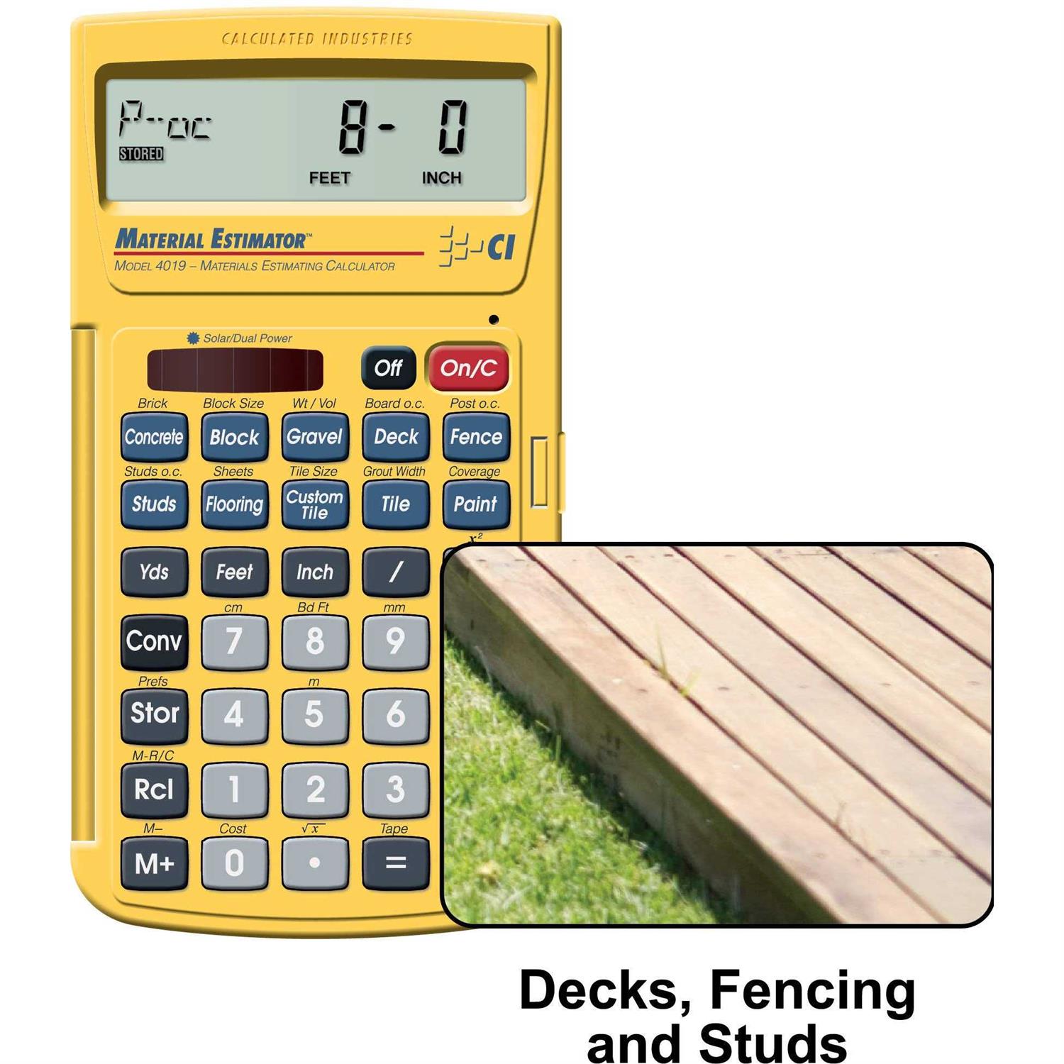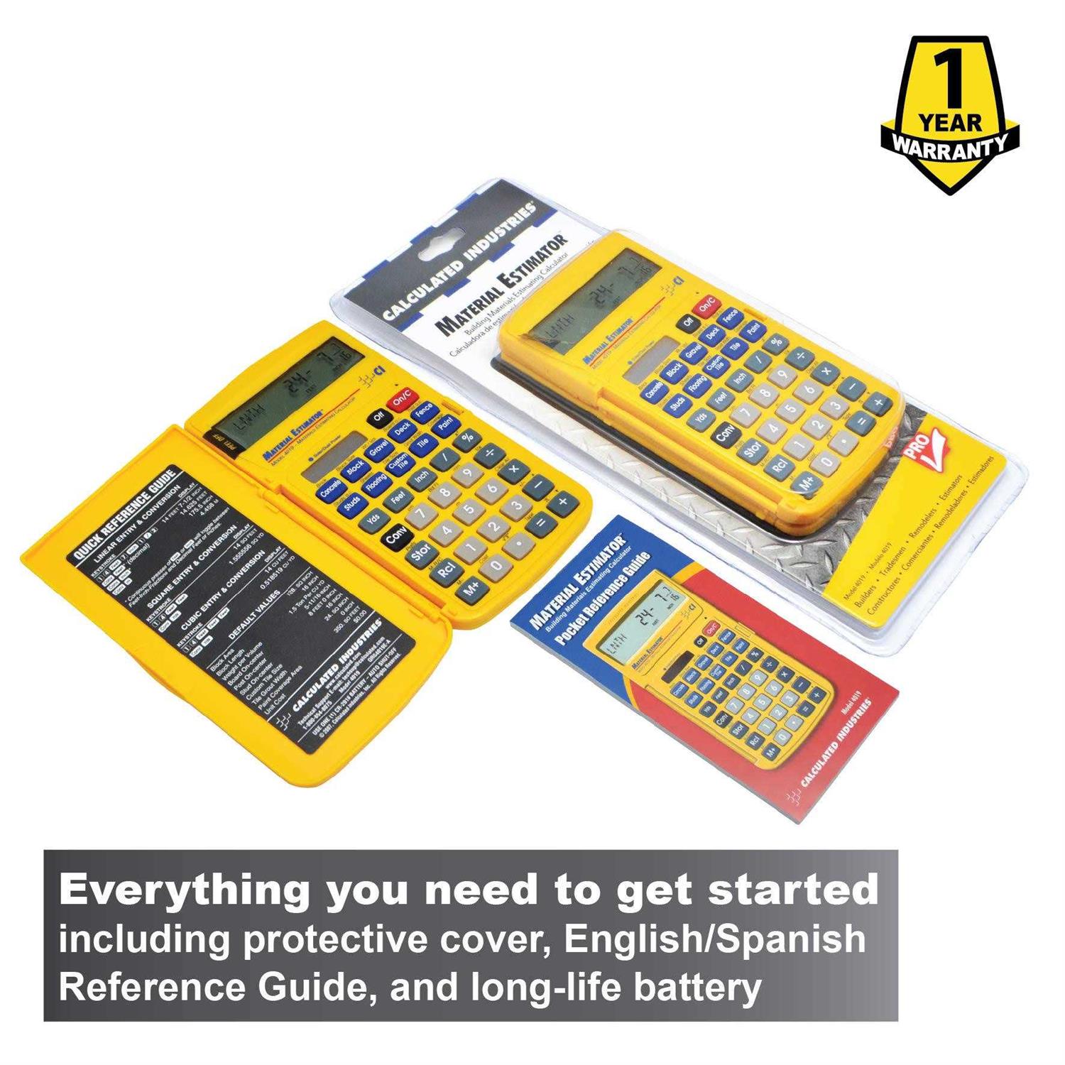 For speedy and efficient calculations the Calculated Industries calculator is the ideal option. Featuring a dual power mode which includes solar and battery the Calculated Industries 4019 can operate effectively even in low light conditions. With this material estimating calculator you can easily view values in yards inches feet and meters without any conversion. Also create and maintain units for materials like board width paint coverage custom tile grout and many more ensuring easy and faster computations.