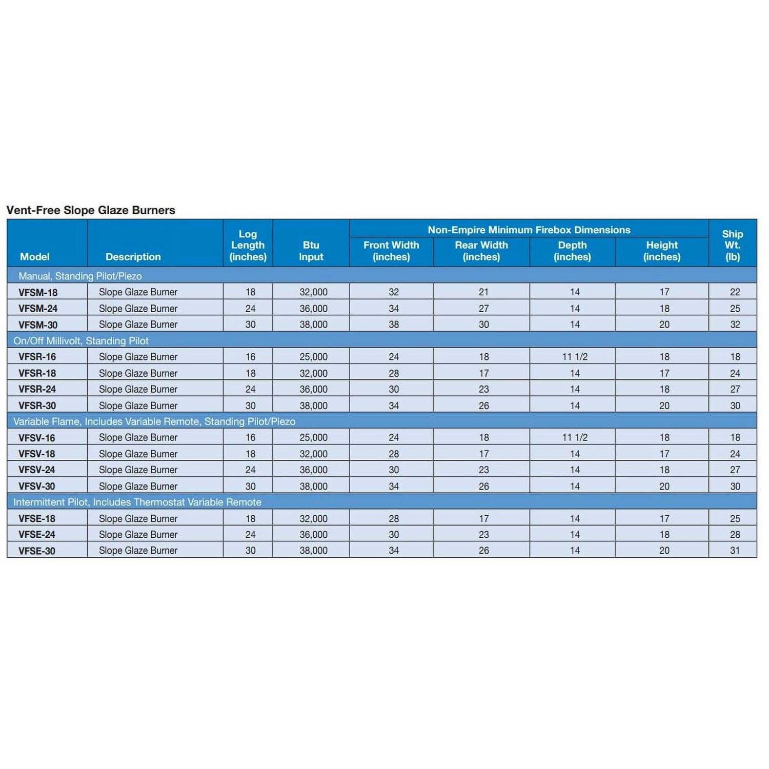 - 18, 24, and 30-Inch gas log offerings Fuel Efficiency