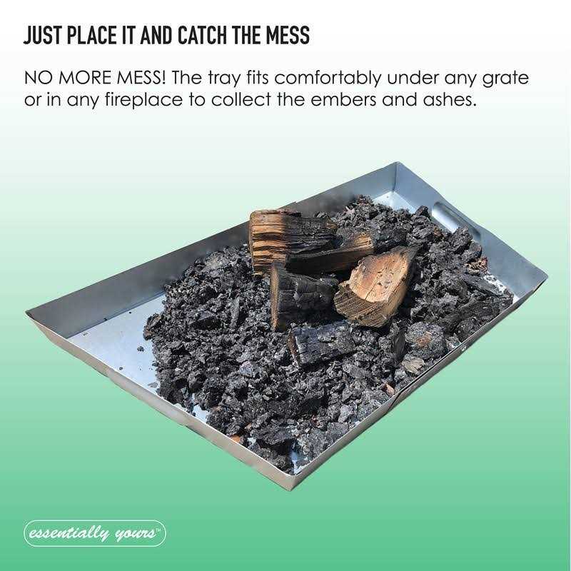 Expanding tray extends from 13″ wide in the back/22″ wide in the front to 22″ wide in the back/32″ wide in the front. It is 2 inches deep and 15 inches front to back. Please check the measurements of your fireplace before purchasing. Includes 4 nuts and bolts, 2 for each side to provide extra stability over similar products. Collects ash, ember and keeps your surrounding areas safe from catching fire indoors The trapezoidal shape is designed to fit standard fireplaces. Keeps your fireplace clean from accumulating dust marks and prevents odor Durable galvanized stainless steel pan prevents rust and is easy to clean, lasts longer than most alternatives Sweeping up ashes after fire burns out on an enjoyable winter evening can be tiresome, especially after a long day of work or when you are spending quality time with your family. Overtime, fireplaces accumulate ash which can leave marks and odor that is unpleasant as well as expensive to cleanup or replace. Essentially Yours Adjustable Fireplace Tray not only just keeps your fireplace clean but also makes it much easier to cleanup after you are done using your fireplaces, small BBQ grills, stoves, etc. Stainless steel material prevents rust and lasts longer than traditional trays, easy to wash and use anywhere. Expandable pan slots fits most fireplaces and makes it easy to carry with you on your family trips.