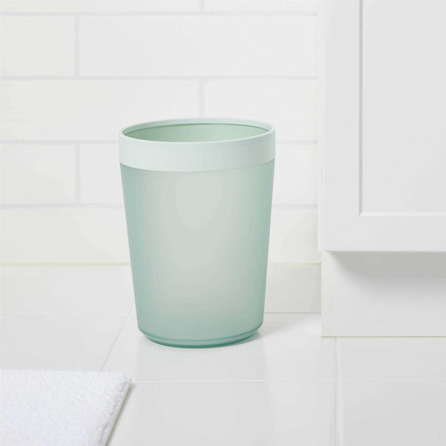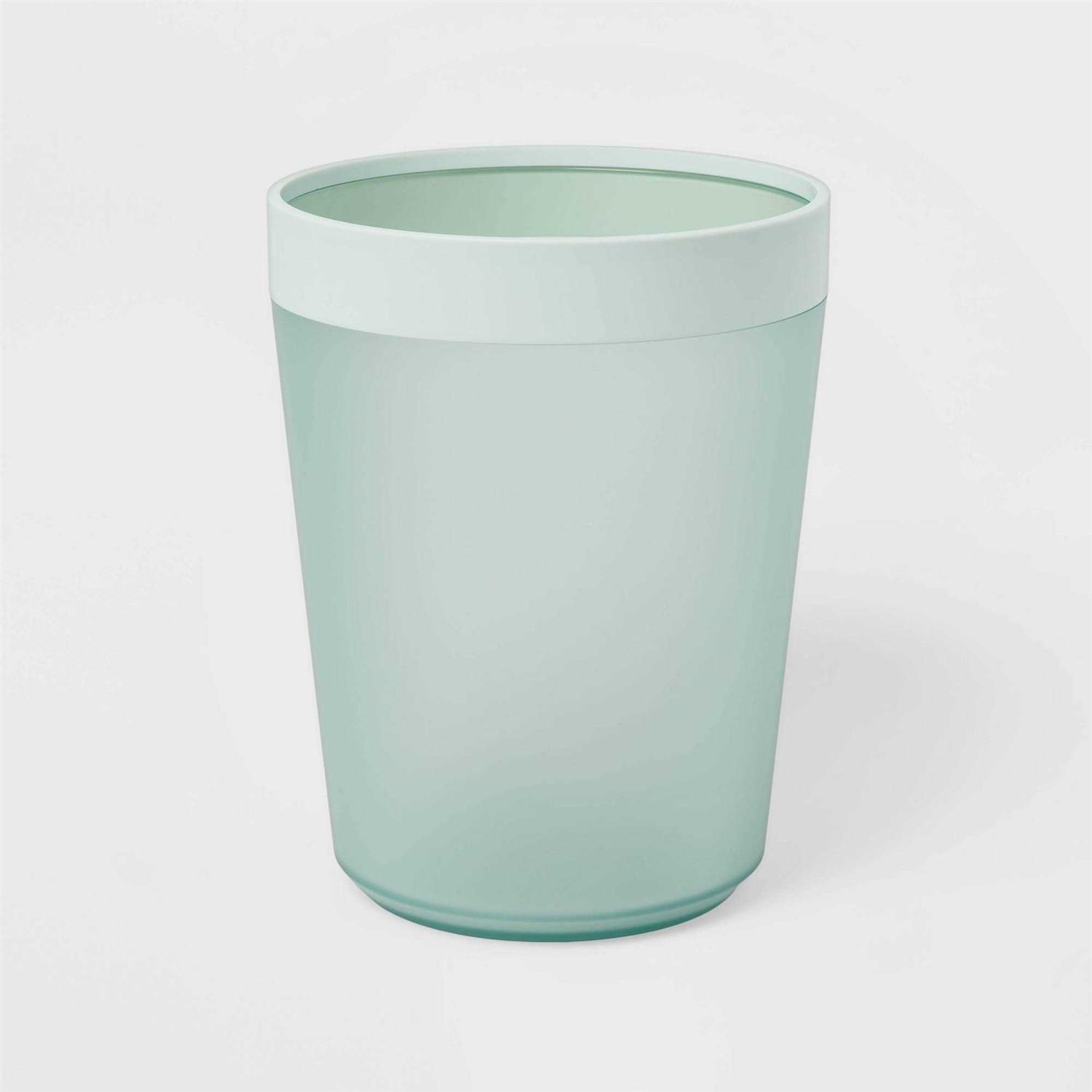 Add a soft splash of color to your bathroom while keeping it organized and clean with this Waste Can from Room Essentials . This round waste can features an open top for easy disposal of trash, as well as a compact design to make it perfect to fit in any corner of your bathroom. Boasting a plastic construction, this mint waste has a slightly lighter rim to add delightful appeal to your bathroom decor. Color: One Color.