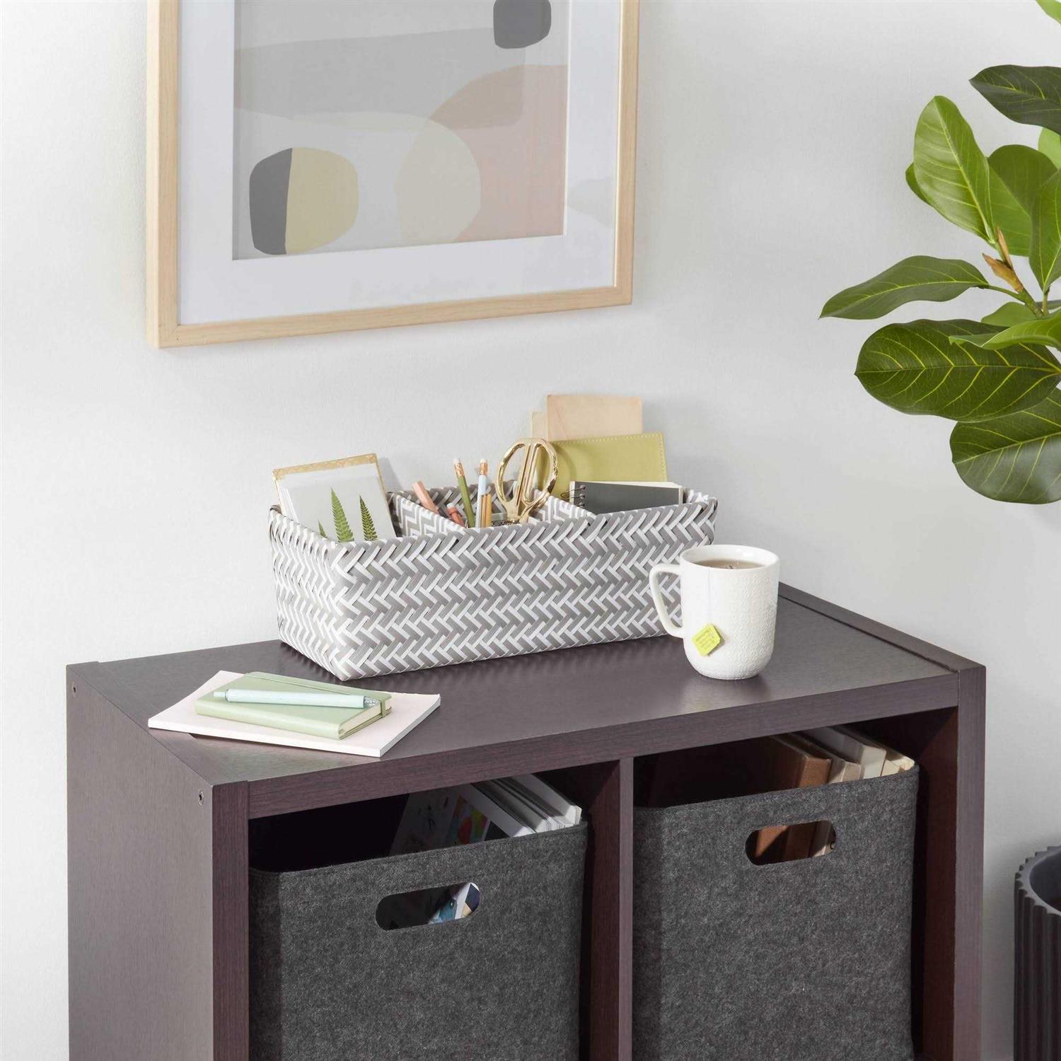 Room Essentials Small Rectangle 3 Compartment Woven Bin, Gray/White