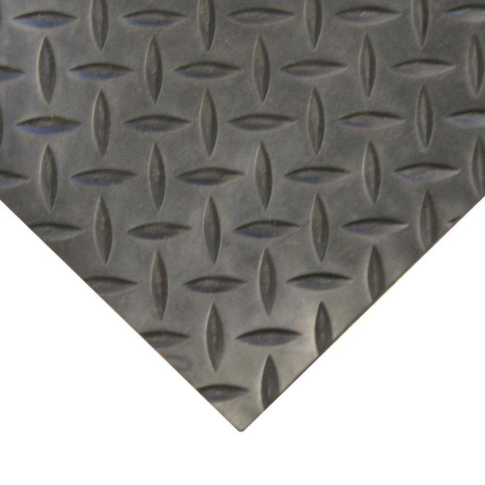 The ³Diamond-Plate² is designed after the classic metal diamond-pattern design. This is a regular pattern of raised diamonds that imbue the industrial aesthetic. Our rubber floor mats are made to floor and protect surfaces just like their metallic forefathers. But with rubber runners, the end-user has the benefits of a forgiving surface that will absorb impact and shock at ultra-affordable costs. Rubber protector mats help safeguard floors and the equipment on top of the floors. Unlike metal, rubber matting will not ding, dent or permanently damage either the floors or the equipment when materials are dropped onto it. Used on stairs and catwalks in industrial settings, the added texture reduces the risk of slipping. For this reason ³Diamond-Plate² rubber floor mats are frequently used on the interior of vehicles or trailers. The ease of installation makes this product an even more popular choice amongst cost-conscious consumers, since the use of adhesives and installers is not needed. This rubber matting is made from 100% synthetic rubber and that allows it to be used in outdoor walkways without worry. Being offered in 8 varied lengths minimizes product loss (due to cutting) and installation costs. Buy one of these rubber floor mats for their superior functionality and enjoy the classic industrial design for years to come.