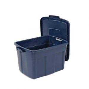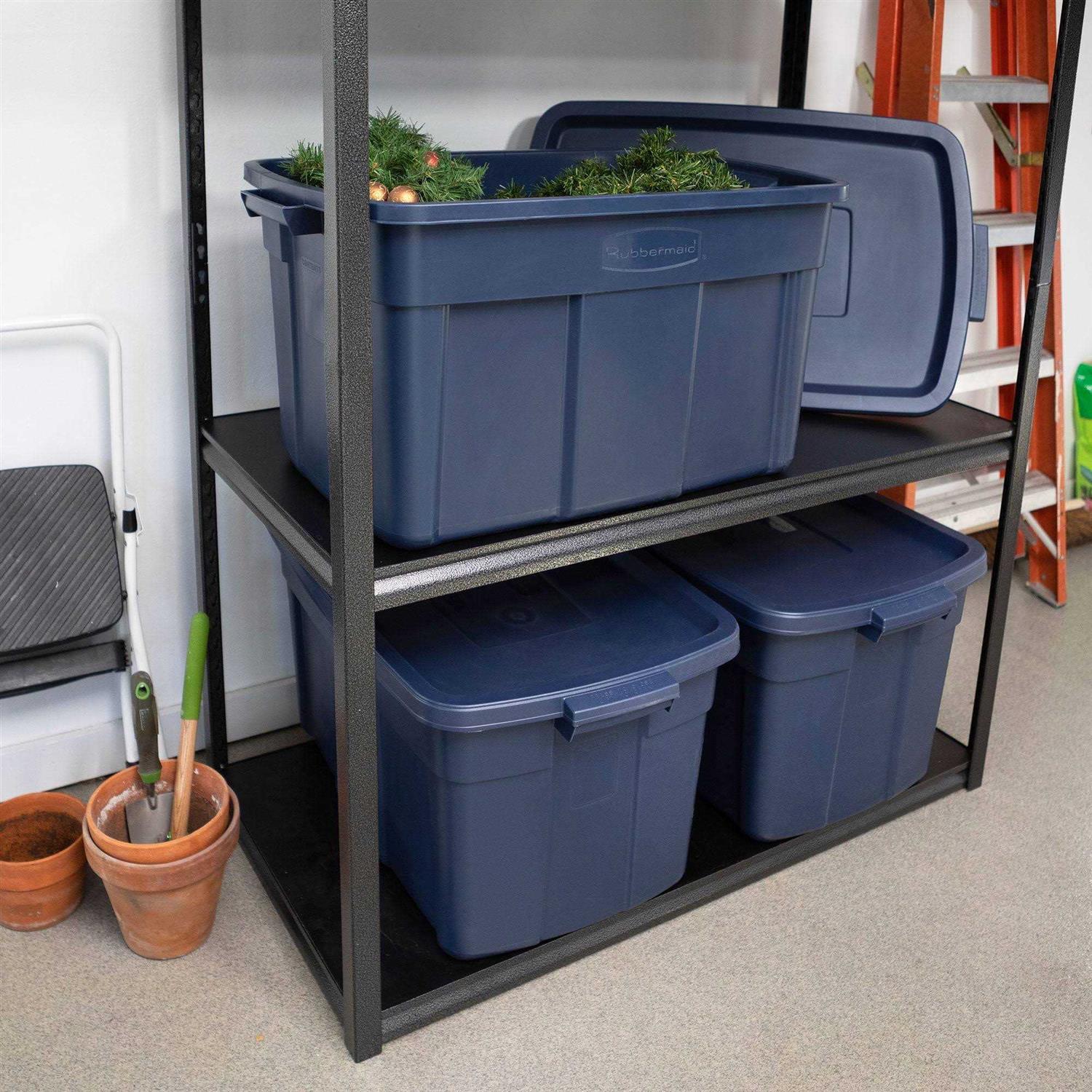 Store a variety of clothes, art supplies and equipment within the Rubbermaid Roughneck Tote. It’s designed to stack with other bins for space-efficient storage. Made from virtually indestructible polyethylene. Holds up to 31 gallons. Stackable design for easy storage. Includes a snap lid for secure closure. Sleek indigo design.