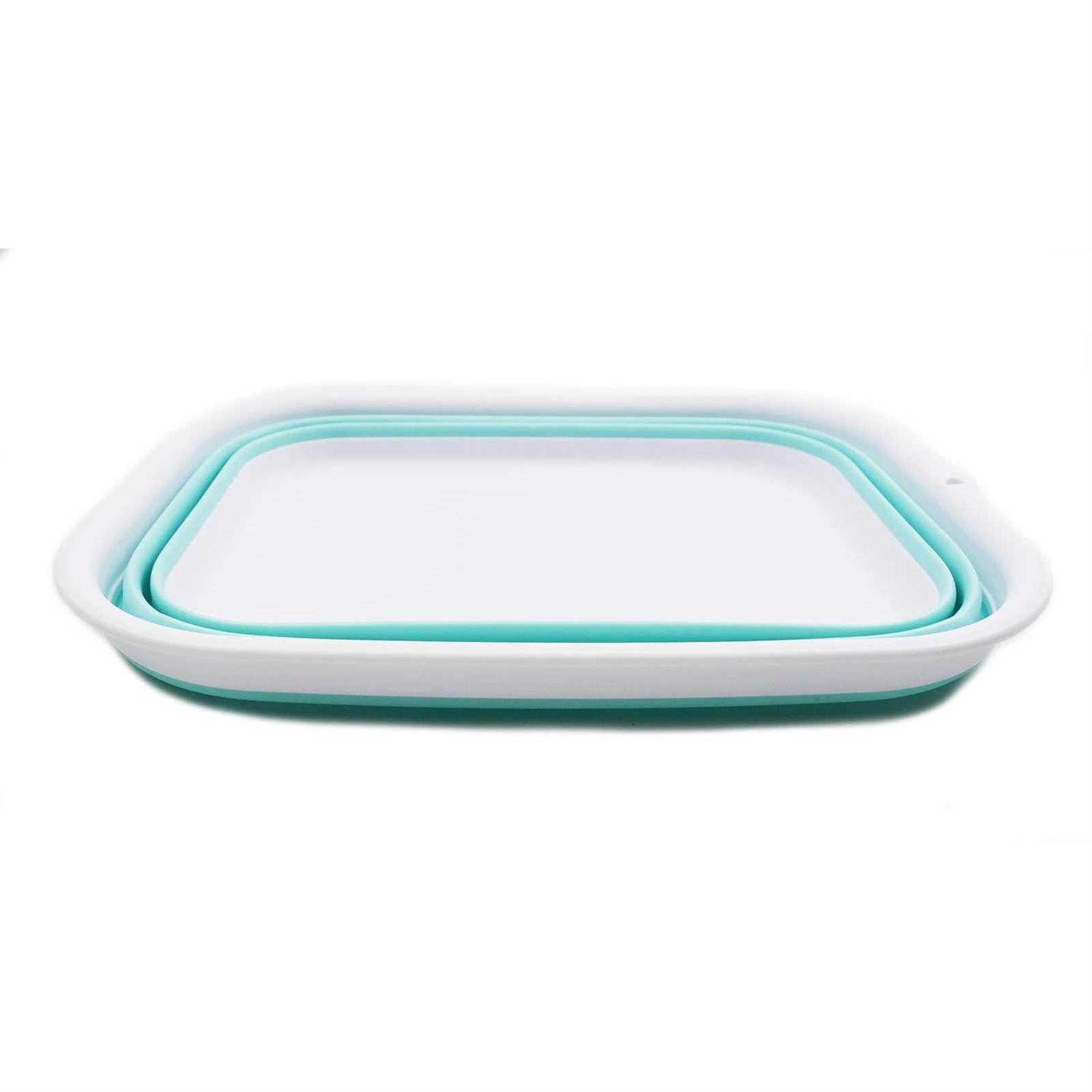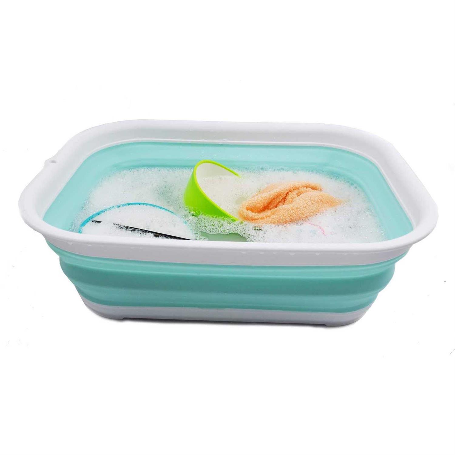 SAMMART 12L (3.17 Gallon) Collapsible Tub – Foldable Dish Tub – Portable Washing Basin – Space Saving Plastic Washtub (1, White/Lake Green)