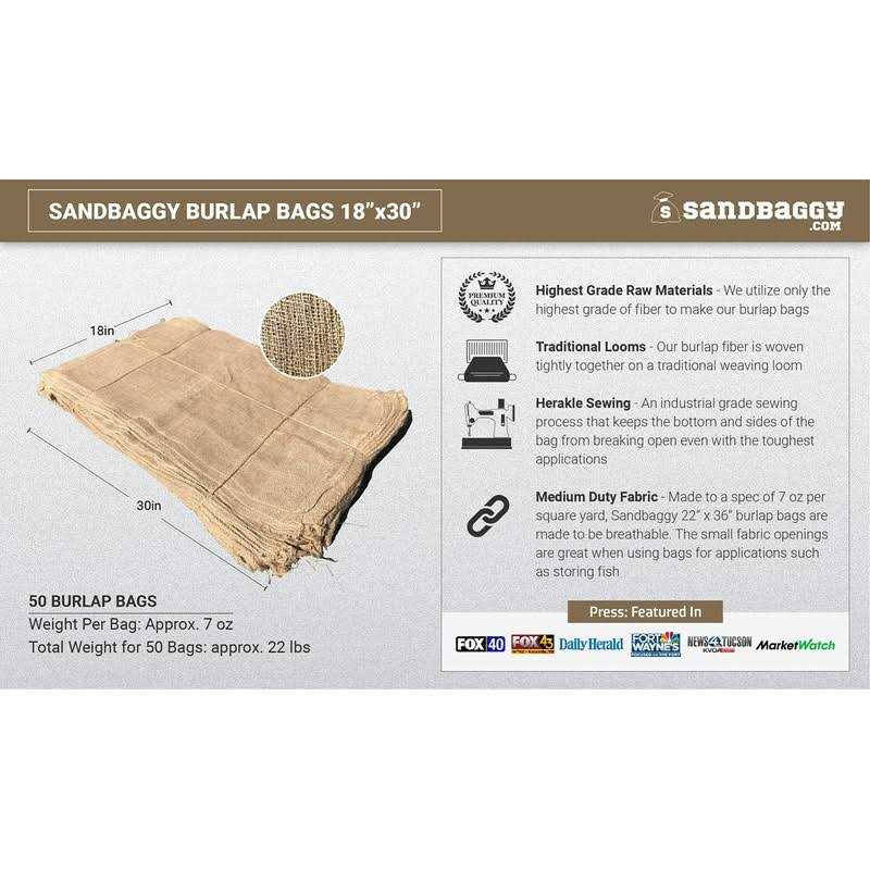 - Burlap bags are 100% biodegradable, making them more eco-friendly than plastic sandbags.