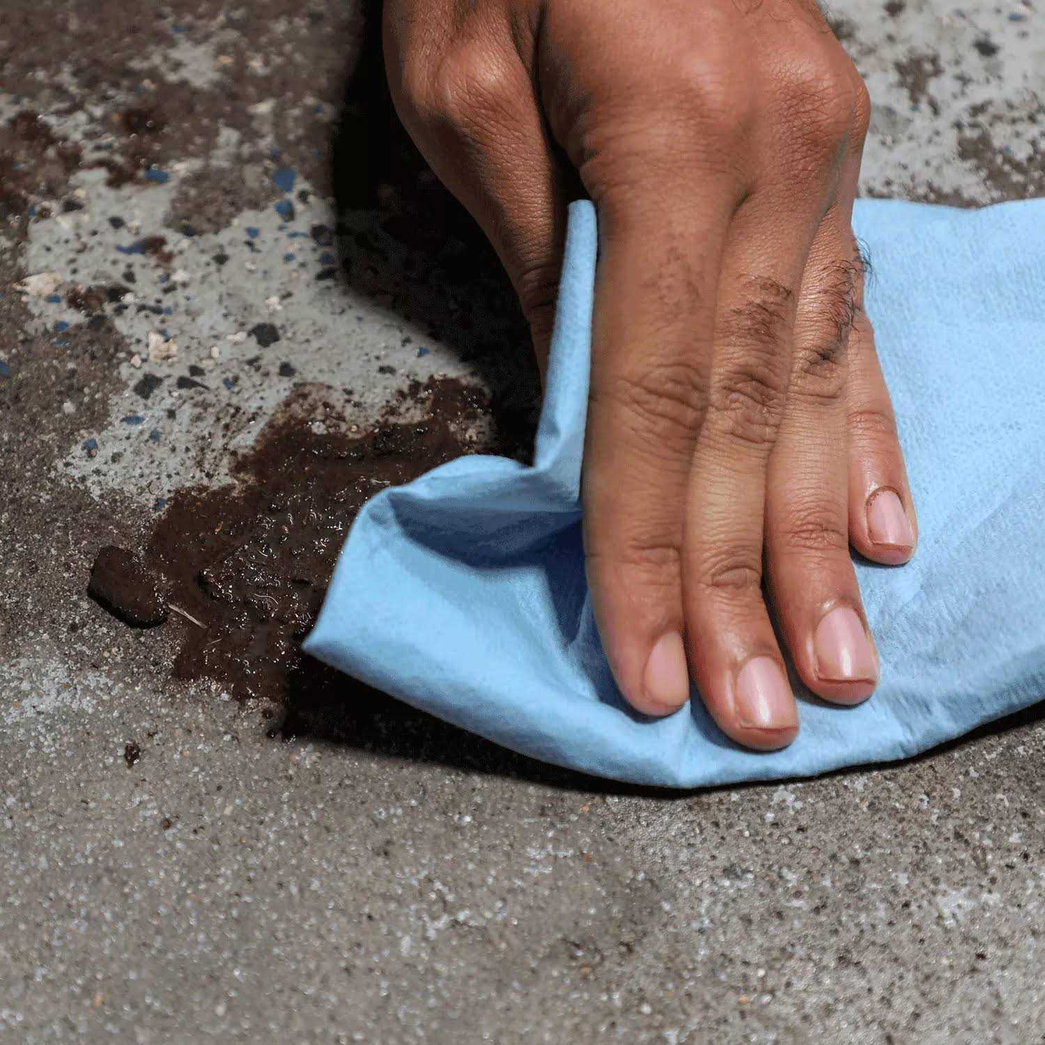 • Works when wet and easily absorbs liquids, oils and grease