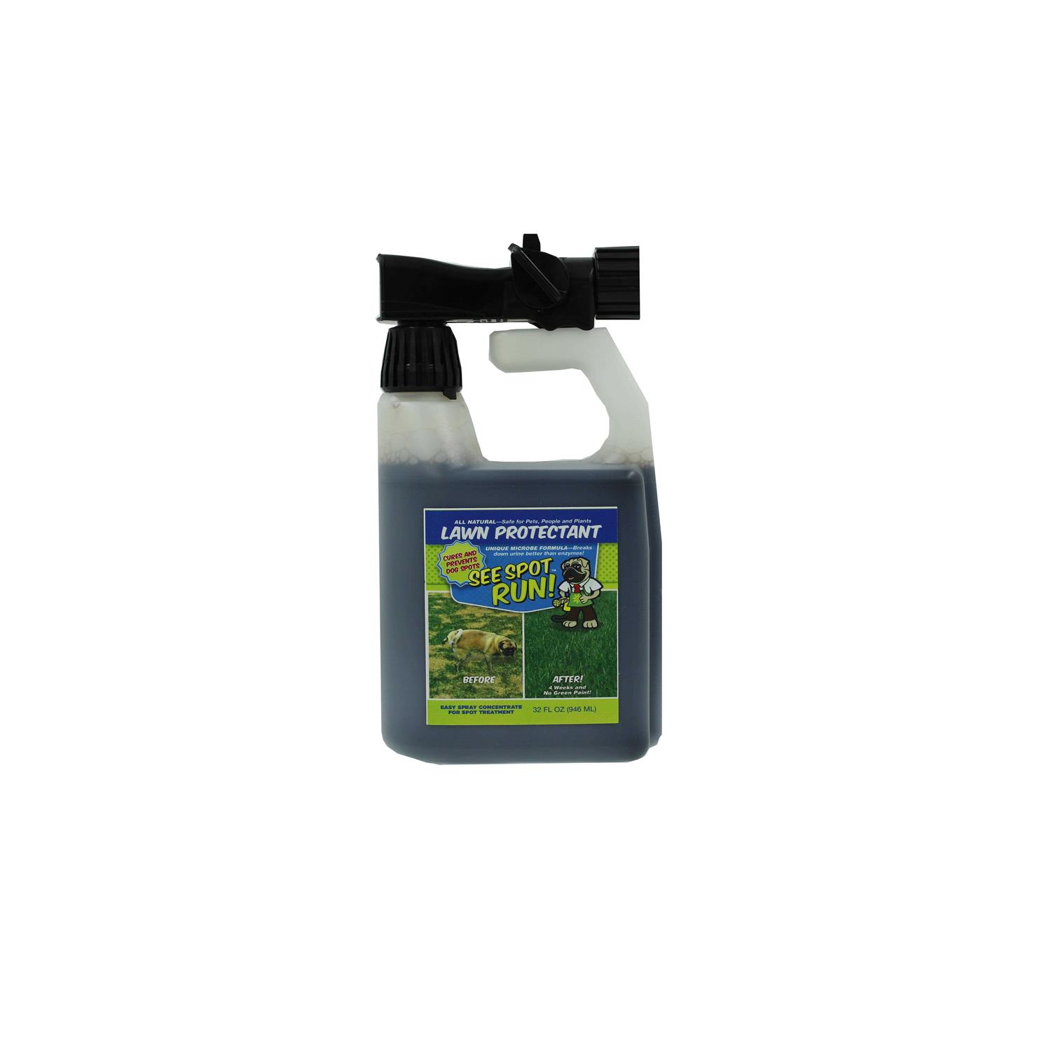See Spot Run Dog Urine Grass Saver, 32-oz bottle; Spots and speckles on your pup are super cute. Spots on your lawn are not. With this Grass Saver from See Spot Run, you can help repair and cure your lawn by attacking dog urine on a microbial level. It’s not magic—it’s just science! The natural microbes in this solution help to cure your soil and prevent new spots by neutralizing the damage left behind by your pet. You can then plant new seeds or infill surrounding areas to return your lawn to its lustrous, green splendor. This blend is non-toxic, so it’s safe around your pets and children, plus it’s environmentally friendly—so it’s kind to your yard, too! Better soil leads to better roots, which naturally leads to a better lawn! So, save yours with See Spot Run, and stop seeing spots in your backyard.