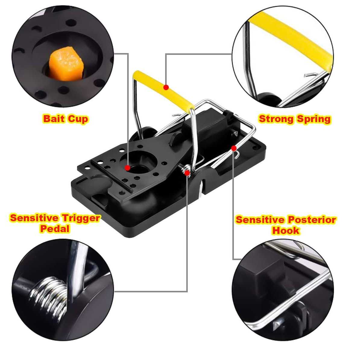 Mouse trap with sensitive trigger and powerful spring, mouse trap kills the mice faster and effectively,15 grams only can trigger the trap and ensures killed which is faster and quicker. help you get rid of mice fast Mouse traps indoor and outdoor are reusable and easy to clean, mouse traps are made of durable plastic and stainless steel, strong and not easily broken .mouse trap does not absorb any odor or stains like the traditional wood rat traps so it can be reused after washing Mouse traps are easy to set up, mouse trap eliminates the use of fingers to set up like in traditional methods avoiding any possible injury to your fingers, only need to put the bait on the cup and press the spring of the trapper until it clips with the ground side and it’s done Mouse traps for house without touching the mouse while removing it, only need to hold the tail of the mousetrap ,when you take the mouse trap above the trash can just open the trap to throw away the mouse Mice traps for house indoor and outdoor solve the problem of mice infestation in all directions. place it in warehouses, gardens, kitchens, corridors and other places where rats frequently then you will stay away from mice troubles Product Name:Mouse Trap – Material: ABS Plastic and Stainless Steel – Single Mouse Trap Size:3.82*1.81*2.16 inch – Package Include:12 PCS Mouse Traps,1 User Manual – Warnings1. Bait first, then set the mouse trap in case of injuring your fingers.2. Please keep the mouse traps far away from children and pets.3. After setting the mice trap, never touch the mice traps trigger position with your hand.4. If you want to release the trap, please use a stick or other tools.5. Anyway, please be careful, don’t hurt yourself.