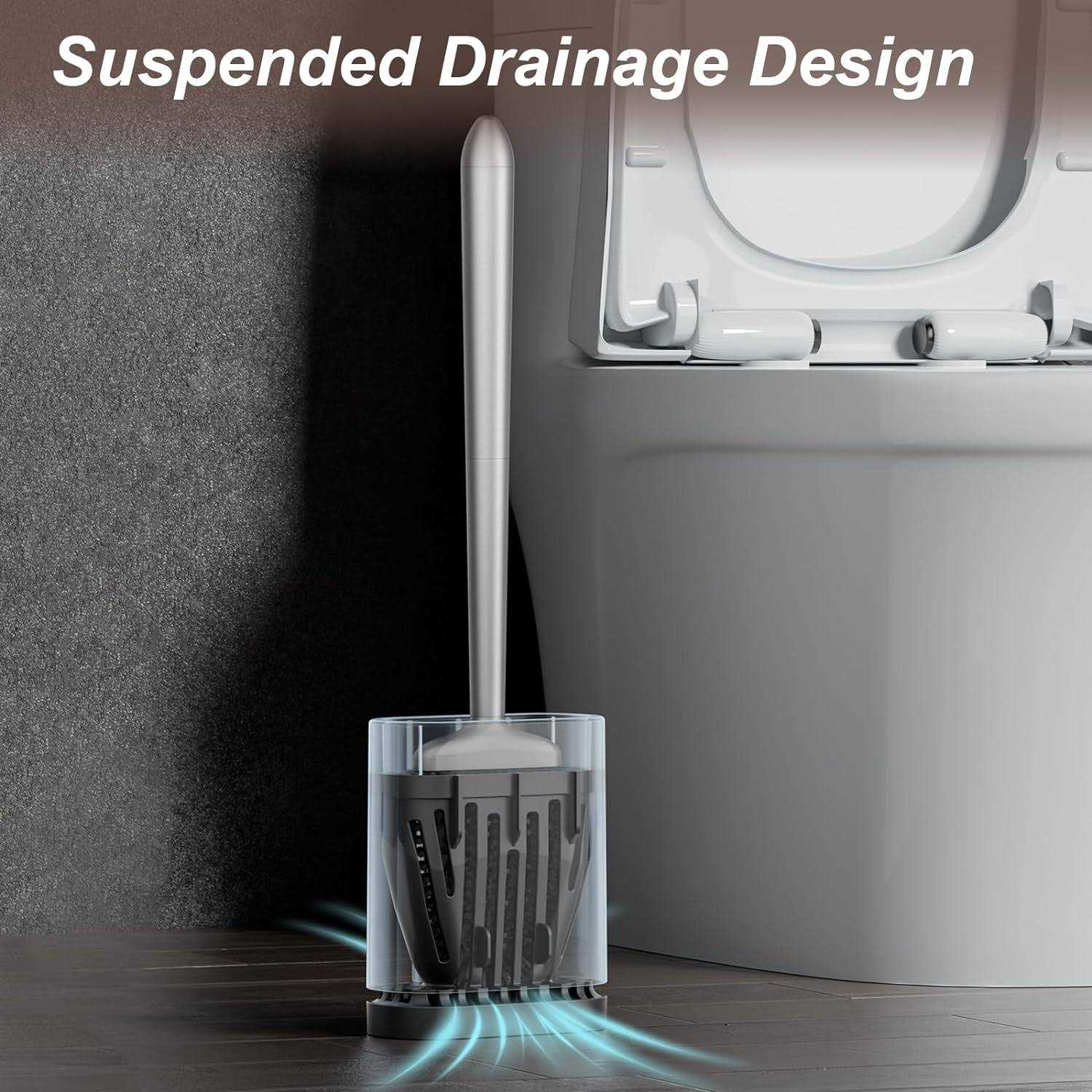 Sellemer Toilet Brush and Holder Set for Bathroom, Flexible Toilet Bowl Brush Head with Silicone Bristles, Compact Size for Storage and Organization