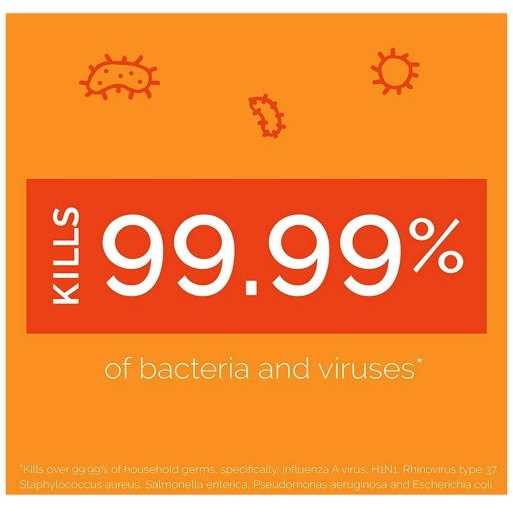 - Disinfecting ingredients kill 99.99% of bacteria without harsh solvents