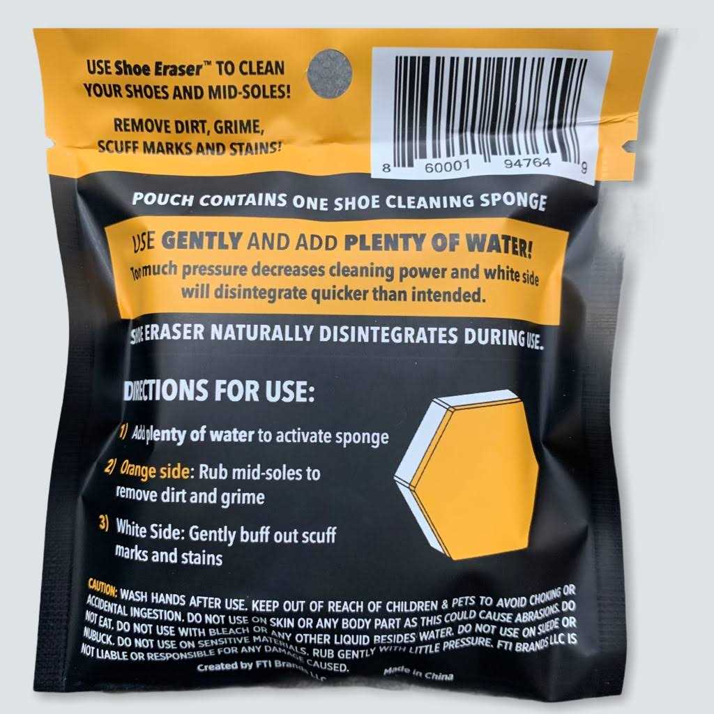 Easily cleans white soles without struggle or fuss! Sneakers that have been well worn can be cleaned to look new again with these incredible shoe eraser packs. Very easy to use: just add water to the eraser and rub the stain away. They’re best at cleaning the white soles of sneakers. Great for home use, resale in convenience stores or shoe stores, and more.