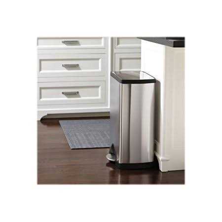 Pre-Owned Classic Rectangular Kitchen Step Can The simplehuman 38 Liter / 10 Gallon stainless steel rectangular kitchen step trash can has an internal hinge and space-efficient shape so you can place it directly against the wall and out of the way. And its stylish design enhances any home decor. I’m the Strong and Silent Type The strong steel pedal means the can is hands-free and is designed to last 150000 steps that’s more than 20 steps a day for 20 years and simplehuman’s patented lid shox technology ensures that the lid closes softly in a smooth quiet manner. Custom Fit Trash Can Liners simplehuman Code J trash can liners are a perfect fit for this trash can. They are made from extra-durable plastic with thick double seams to prevent rips and tears and have been rated among the top in strength comparable to other major brands. Extra strong to keep garbage in the bag not on the floor or the bottom of your trash can.