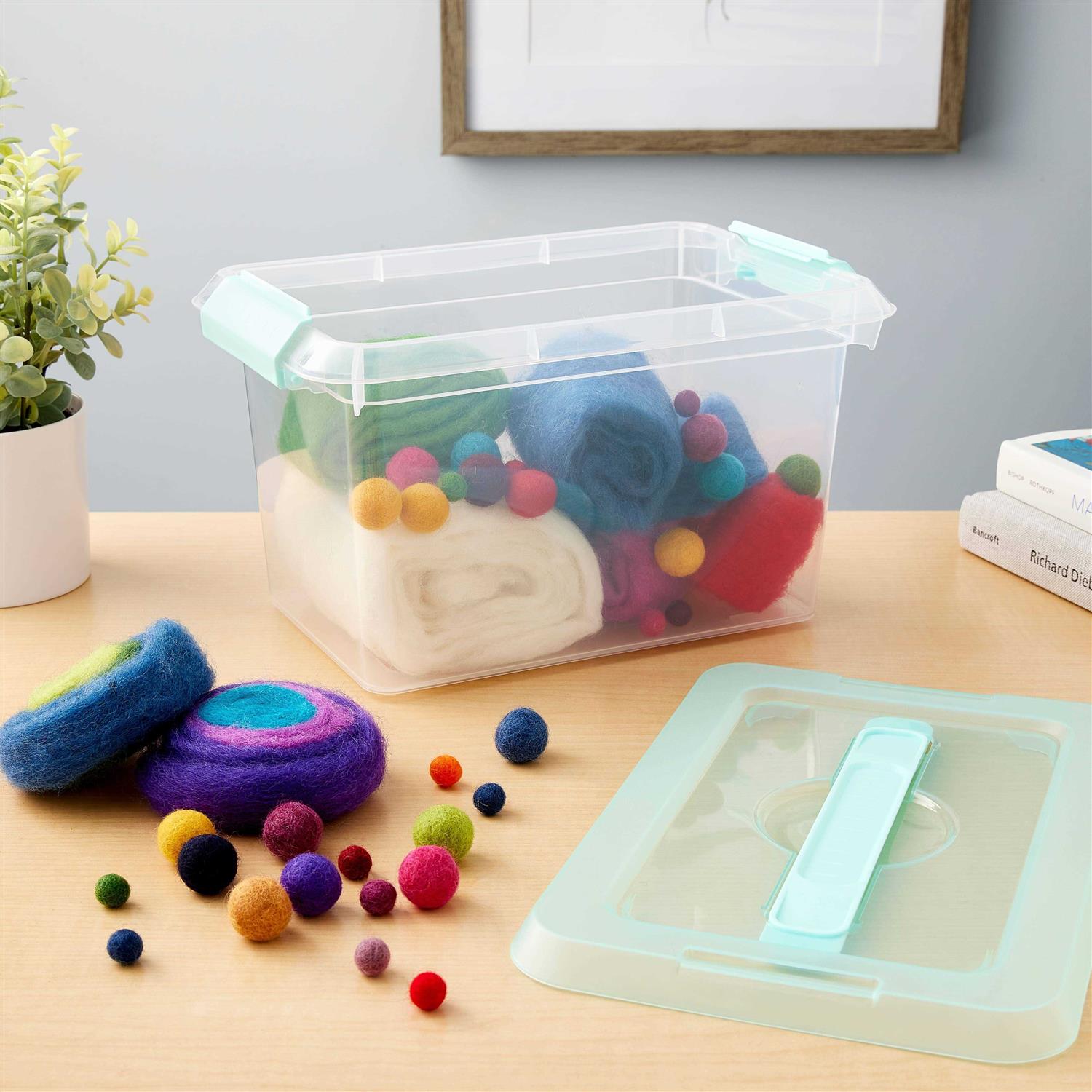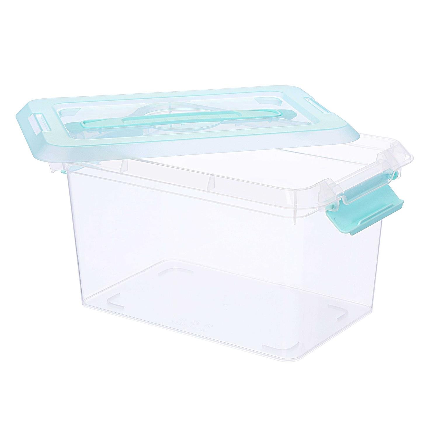 Buy the 6.2qt. This clear storage bin is great for keeping your favorite craft supplies organized. This clear storage bin is great for keeping your favorite craft supplies organized. You can also use it to store household items, knickknacks, books, files, linens and more. Details: Available in assorted colors of lids 6.2 qt. (5.8 L) 11.6″ x 7.6″ x 6.9″ (29.7cm x 19.5cm x 17.6cm) Plastic | 6.2qt.