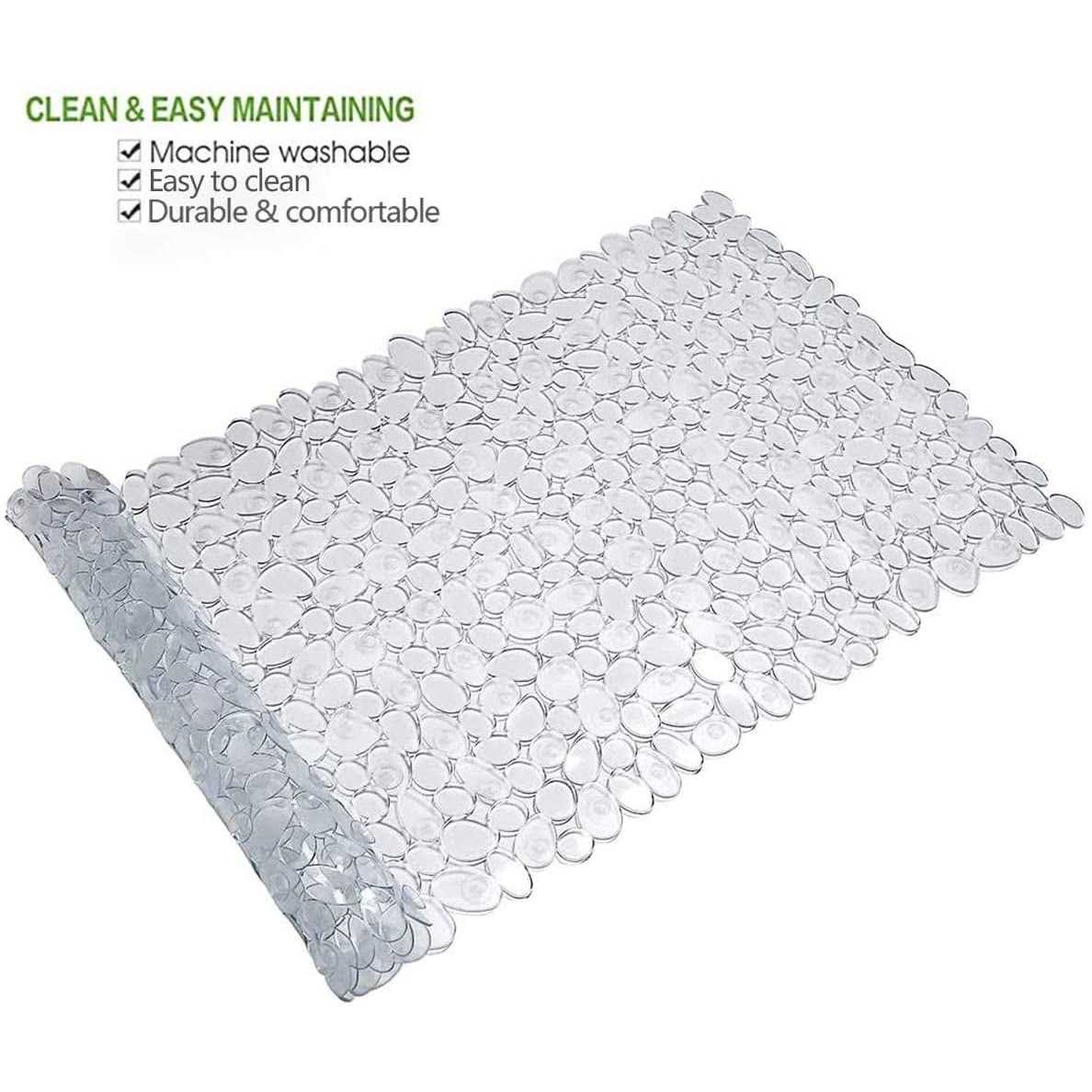 Bathtub Mats by SONGZIMING. Details:Why you choose our shower mat? This pebble shower mat mat is great for the bathtub, apply to kids and adults daily use; Smooth but slip-resistant surface,more safe and comfortable to stand or sit on; Easy to clean, hand washable or machine washable, beautiful pattern; Perfect size to fit vast majority of tub,or you can cut easily the math to any shape that you want. How to use? √ The bathtub must be clean,without any dirt,smudges,oils,to prevent falling,make sure the suction cups is immovable before use every time. √ Easy to clean,you can rinse directly with water after you used,machine-wash available,hang to air dry. Specification: Color: Clear; Weight: 830g; Material: PVC; Size: 16 inches in width;35 inches in length; Package includes:1 x Bath mat.