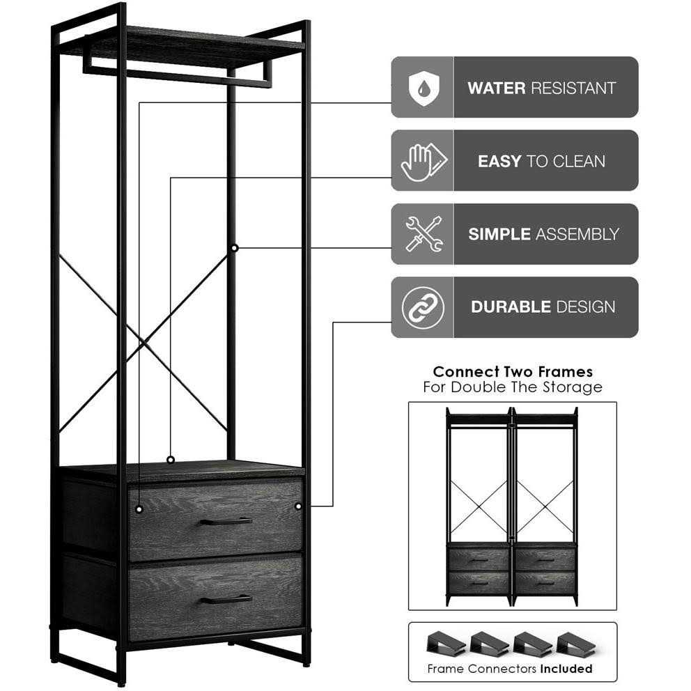 Sorbus Clothing Rack with 2 Drawers – Rustic Black