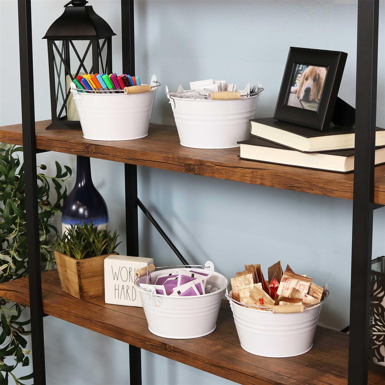 Sunnydaze Galvanized Steel Bucket with Handle – Set of 10 – White