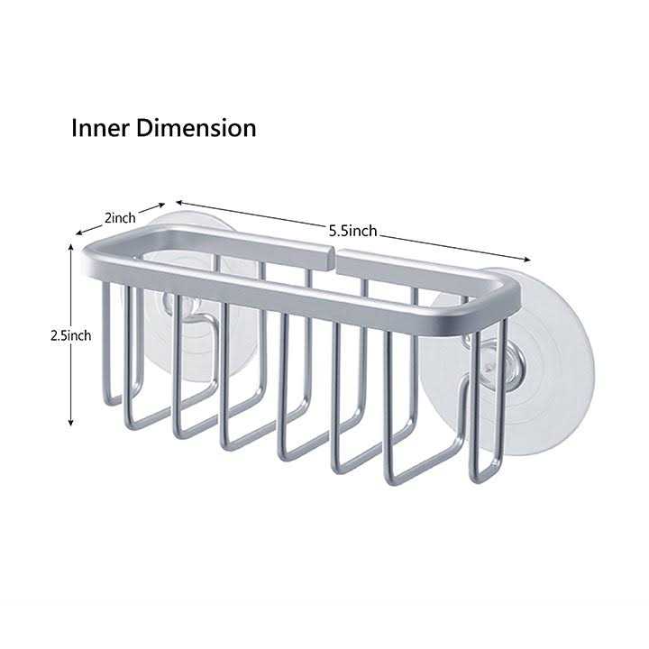 SunnyPoint NeverRust Kitchen Sink Suction Holder for Sponges, Scrubbers, Soap, Kitchen, Bathroom, 6 inch x 2.5 inch x 2.75 inch, Aluminum (Mat Silver,