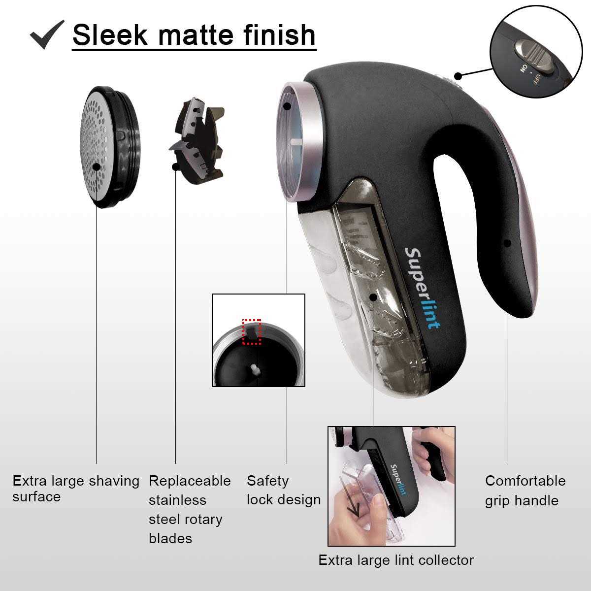 The SUPER LINT Fabric Shaver is a household must have to keep your garments looking and feeling like new. This fabric shaver quickly and evenly shaves unwanted fuzz, lint, and pilling. It is easy-to-use and adjusts to accommodate different fabric types. The large shaving head and easy-grip handle makes shaving quick and comfortable. It is the perfect garment care tool to keep on-hand.