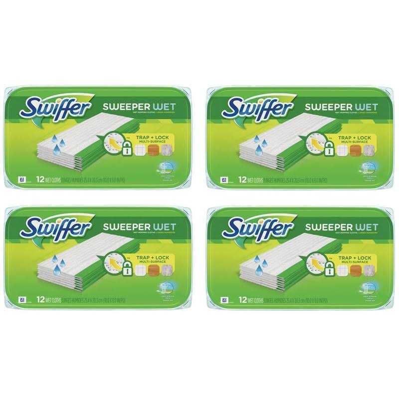 Swiffer Sweeper Wet Mopping Pad Refills for Floor Mop Open Window Fresh Scent 12 Count – 4 Pack