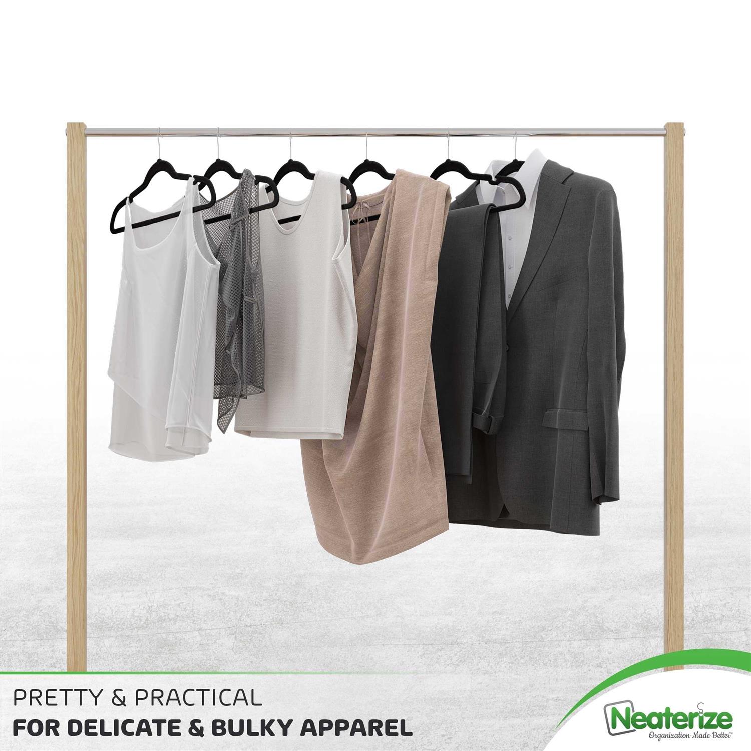 USE, REUSE, REPEAT! Built to battle the chaos closets can become, Neaterize hangers provide a sophisticated solution to organization while remaining strong & sturdy through the many seasons to come! THE MAGAZINE-WORTHY CLOSET! Neat freak or not, these velvet hangers are the most effective tool for organizing & storing clothing, coats, and accessories. Hang with class and convenience! EXCLUSIVELY DESIGNED NOTCH! Unique to Neaterize velvet hangers is the added notch allowing accessories to remain with their counterparts to ensure easy removal. Keep that belt/tie/ribbon/top right where they belong!