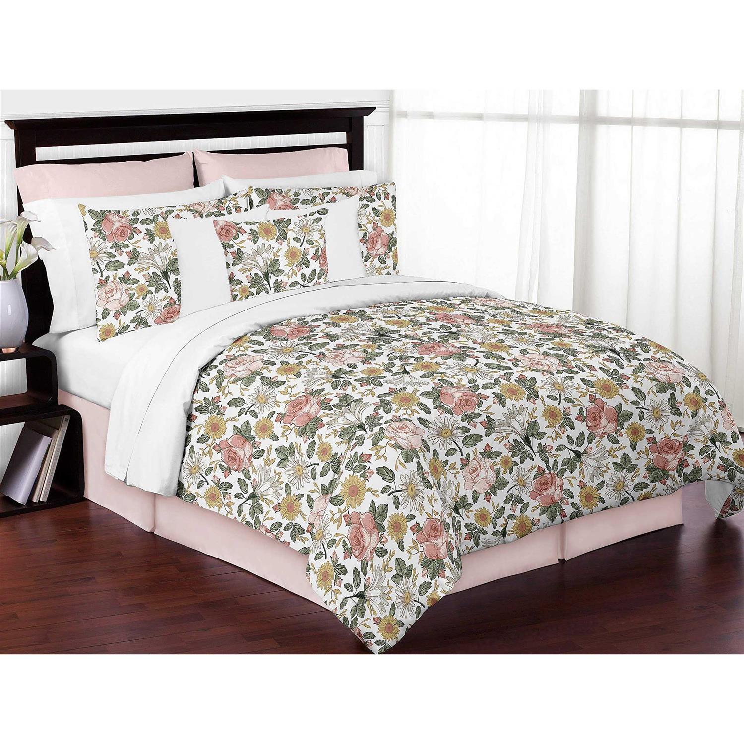 Sweet Jojo Designs Vintage Floral Boho Bathroom Fabric Bath Shower Curtain – Blush Pink Yellow Green White Shabby Chic Farmhouse