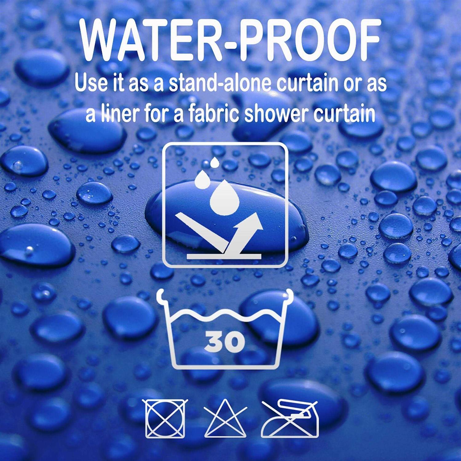 This shower curtain for bathrooms is made of 50 % Eva and 50 % polyethylene. This neutral tone shower curtain lends a touch of elegance and style to your bathroom. Reinforced grommets and header along the top make it durable enough for long-lasting satisfaction (12 shower rings needed, sold separately). Prior to hanging, immerse curtain in a bath of warm water to help remove creases. Cleaning with soapy water only. Width 71-Inch and height 79-Inch. 13 solid colors available. This shower curtain is the perfect blend of simplicity and perfect to add a decorative touch in your bathroom! Complete your decoration with other products of the same collection. Imported.