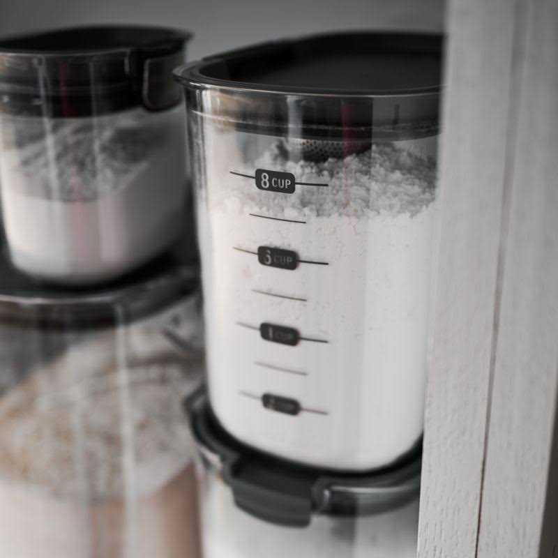 Get your kitchen organized and keep food fresh! This exceptionally made set includes five containers for baking essentials like flour, granulated sugar, brown sugar, powdered sugar and baking soda. Each BPA-free ProKeeper piece features its own specialized tool for ease of use and a silicone seal for airtight storage.